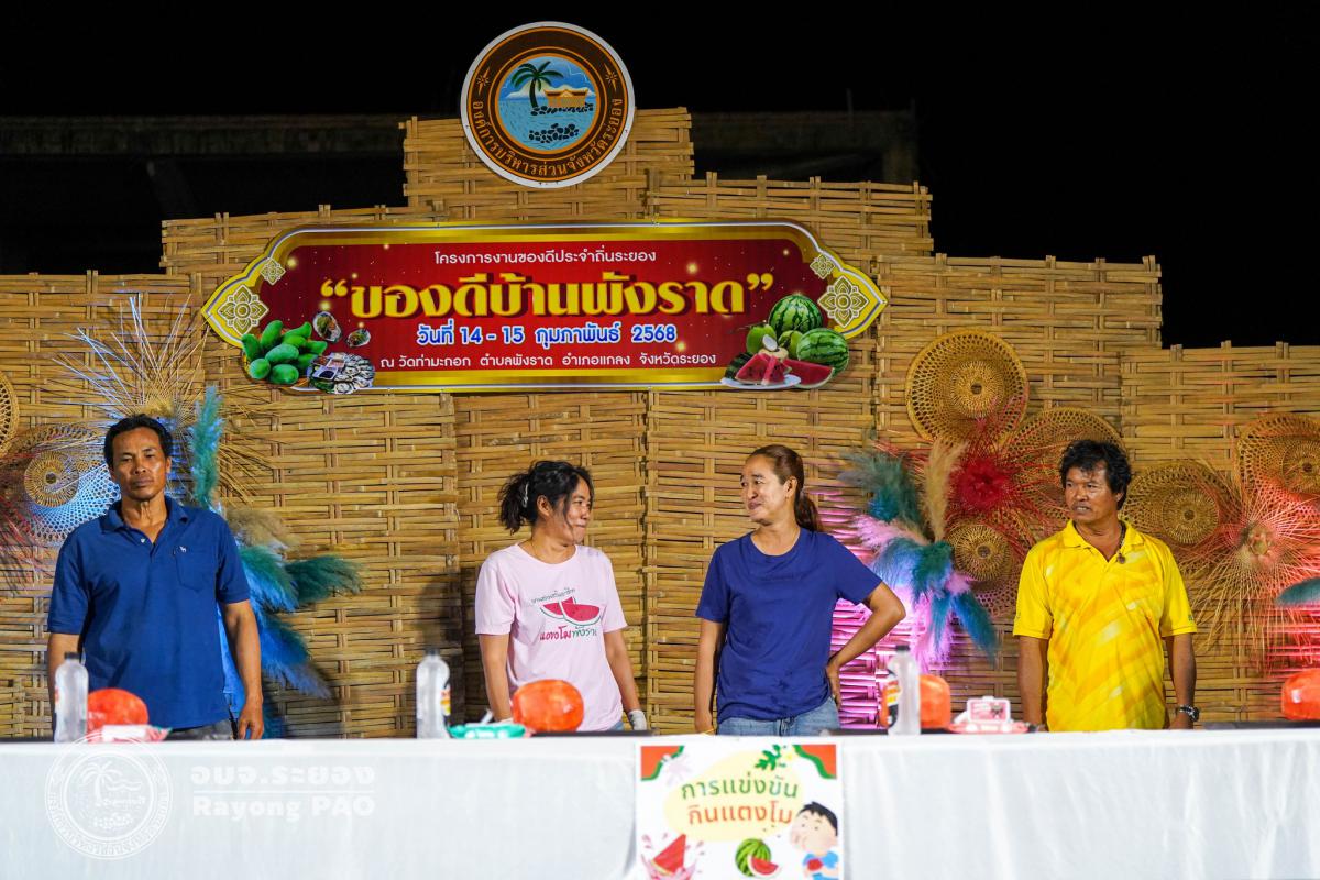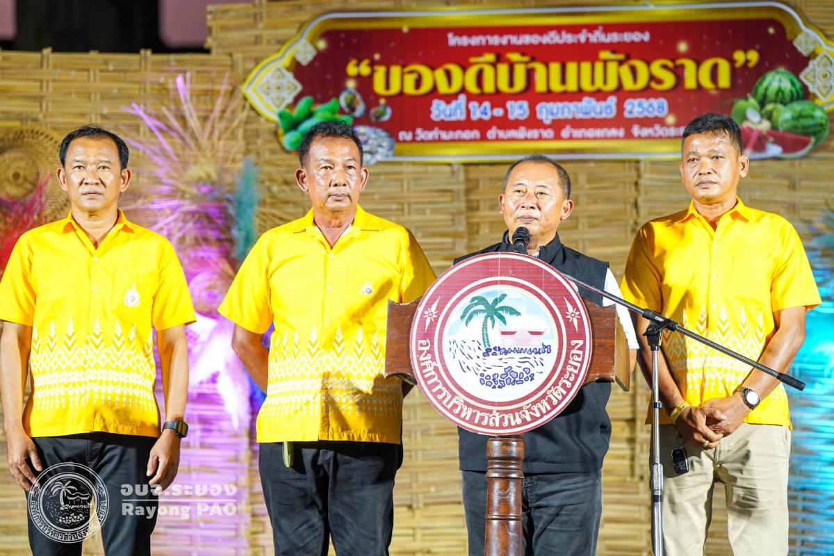 วันที่ 14 กุมภาพันธ์ 2568 เวลา 18.00 น. นางสาวสุธัญญา สุขรมย์ รองปลัดองค์การบริหารส่วนจังหวัดระยอง เข้าร่วมพิธีเปิดโครงการงานของดีประจำถิ่นระยอง “ของดีบ้านพังราด” โดยมี นายกันตภณ สุขสงค์ นายอำเภอแกลง เป็นประธานเปิดโครงการฯ พร้อมด้วย หัวหน้าส่วนราชการ และผู้ที่เกี่ยวข้องเข้าร่วมพิธีเปิดโครงการฯ โดยพร้อมเพรียงกัน ซึ่งโครงการดังกล่าวจัดขึ้นเพื่อเป็นการประชาสัมพันธ์ผลผลิตทางการเกษตร และของดีประจำถิ่นของจังหวัดระยอง และเพื่อเป็นการส่งเสริมให้ประชาชนในท้องถิ่นมีรายได้เพิ่มมากขึ้น จากการจำหน่ายสินค้าภายในงาน รวมไปถึงยังเป็นการประชาสัมพันธ์และส่งเสริมการท่องเที่ยวเชิงเกษตรของอำเภอแกลง จังหวัดระยอง ให้เป็นที่รู้จักมากยิ่งขึ้น ภายในงานพบกับการจำหน่ายสินค้าของดีบ้านพังราด กิจกรรมการแข่งขันกินแตงโม กิจกรรมการแข่งขันหยอดแป้นปูน กิจกรรมการแข่งขันปอกมะพร้าว การแสดงพื้นบ้าน และกิจกรรมอื่นๆ อีกมากมาย โดยงานจัดขึ้นระหว่างวันที่ 14-15 กุมภาพันธ์ 2568 ณ วัดท่ามะกอก ตำบลพังราด อำเภอแกลง จังหวัดระยอง