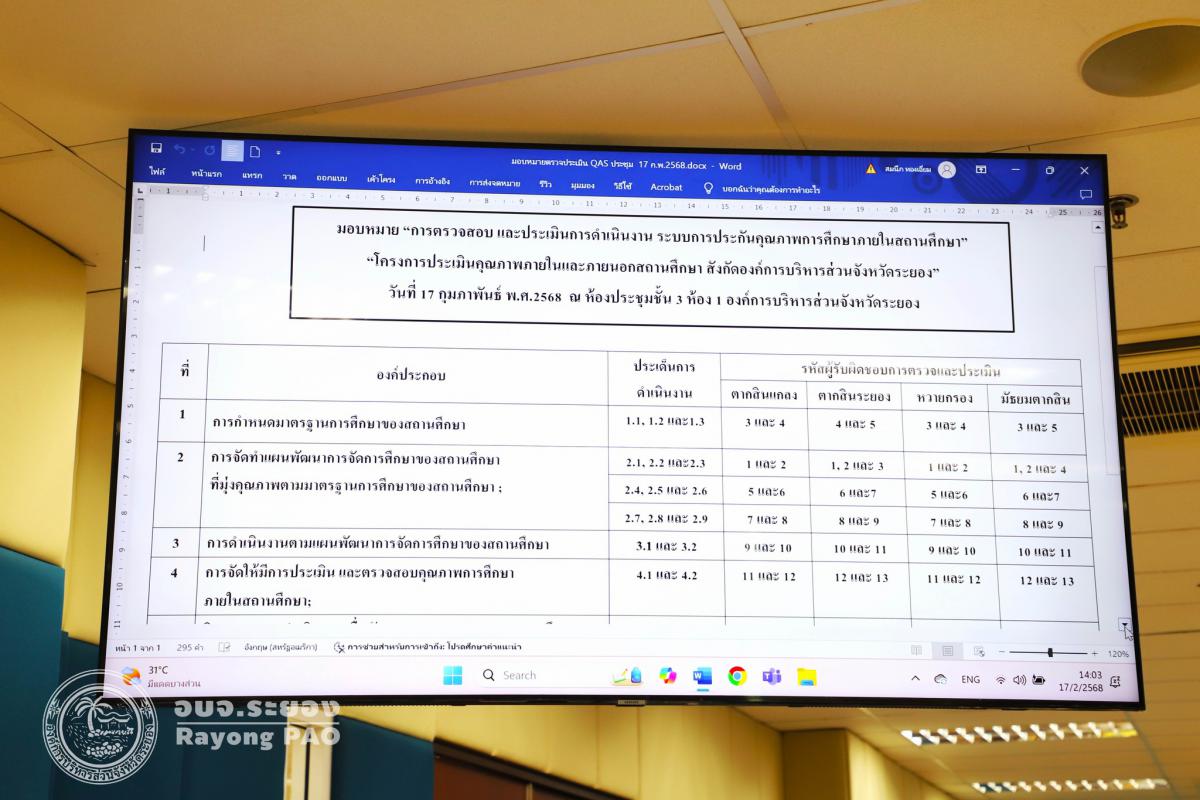 วันที่ 17 กุมภาพันธ์ 2568 เวลา 08.45 น. นายสุรินทร์ แสงทอง ปลัดองค์การบริหารส่วนจังหวัดระยองเป็นประธานเปิดโครงการประเมินคุณภาพภายในและภายนอกสถานศึกษา สังกัดองค์การบริหารส่วนจังหวัดระยอง พร้อมด้วย ข้าราชการ และผู้ที่เกี่ยวข้องเข้าร่วมเปิดโครงการฯ เป็นการอบรมเจ้าหน้าที่ 4 สถานศึกษาในสังกัดฯ ได้แก่ โรงเรียนอนุบาลนานาชาติตากสินระยอง โรงเรียนอนุบาลนานาชาติตากสินบ้านค่าย (วัดหวายกรอง) โรงเรียนนานาชาติตากสินแกลง และโรงเรียนมัธยมตากสินระยอง ซึ่งวัตถุประสงค์ของโครงการฯ เพื่อเพิ่มประสิทธิภาพระบบการบริหารคุณภาพการศึกษาที่ส่งผลต่อคุณภาพผู้เรียนตามเป้าหมายหลักสูตรสถานศึกษา เพื่อส่งเสริมการพัฒนาระบบประกันคุณภาพการศึกษาภายในของสถานศึกษาและระบบบริหารงานคุณภาพ และเพื่อเป็นกรอบแนวทางในการนิเทศ ติดตามและประเมินผลการดำเนินงานประกันคุณภาพการศึกษาภายในสถานศึกษานำร่องพื้นที่นวัตกรรมในสังกัดฯ โดยมีนางสาวสุทธิมาศ อภิรักษ์วณิชย์ ผู้อำนวยการกลุ่มนิเทศ ติดตามผล สำนักงานศึกษาธิการจังหวัดระยอง และนายสมนึก ทองเอี่ยม ผู้เชี่ยวชาญด้านการวิเคราะห์ ตรวจสอบและประเมินผลการศึกษา เป็นวิทยากร ณ ห้องประชุม 1 ชั้น 3 อบจ.ระยอง