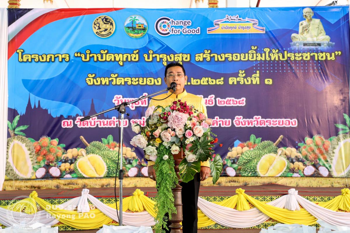 วันที่ 19 กุมภาพันธ์ 2568 เวลา 08.30 น. องค์การบริหารส่วนจังหวัดระยอง เข้าร่วมโครงการ อบจ.พบประชาชน ครั้งที่ 1/2568 ร่วมกับ โครงการ "หน่วยบำบัดทุกข์ บำรุงสุข สร้างรอยยิ้มให้ประชาชน" จังหวัดระยอง พ.ศ. 2568 ครั้งที่ 1 ณ วัดบ้านค่าย อำเภอบ้านค่าย จังหวัดระยอง นำโดยนายไตรภพ วงศ์ไตรรัตน์ ผู้ว่าราชการจังหวัดระยอง เป็นประธานเปิดโครงการฯ โดยมีนายวิจิตร พาพลงาม นายอำเภอบ้านค่าย เป็นผู้กล่าวรายงาน พร้อมด้วย นายสุรินทร์ แสงทอง ปลัดองค์การบริหารส่วนจังหวัดระยอง คณะผู้บริหาร หัวหน้าส่วนราชการ องค์กรปกครองส่วนท้องถิ่น และหน่วยงานต่างๆในจังหวัดระยอง เข้าร่วมโครงการฯ ซึ่งมีวัตถุประสงค์เพื่อประชาสัมพันธ์ภารกิจขององค์การบริหารส่วนจังหวัดให้ประชาชน เข้าใจถึงบทบาทและอำนาจหน้าที่ขององค์การบริหารส่วนจังหวัดและเข้าใจกระบวนการทำงานร่วมกันของท้องถิ่น รับรู้ปัญหาความต้องการของประชาชนในพื้นที่เป็นการช่วยเหลือให้ประชาชนสามารถเข้าถึงบริการของรัฐได้สะดวกรวดเร็วเพื่อสร้างความสัมพันธ์อันดี ระหว่างภาครัฐกับประชาชน โดยกิจกรรมภายในงานมีกิจกรรมเล่นเกมส์ตอบปัญหา, กิจกรรมประชาสัมพันธ์การแจ้งสายด่วน โทร.1669 การสาธิตวิธีการปฐมพยาบาลเบื้องต้น (CPR), บริการตรวจวัดสายตา, ให้ความรู้และคำแนะนำเรื่องยาเสพติด, จำหน่ายสินค้า OTOP, แจกแว่นสายตาฟรี, แจกปุ๋ยมูลไส้เดือน, จำหน่ายไข่ไก่ราคาถูก, แจกพันธุ์ไม้, แจกพันธุ์ปลา, บริการตรวจสุขภาพของหน่วยแพทย์เคลื่อนที่ นอกจากนี้ยังมีกิจกรรมจากหน่วยงานราชการมาให้บริการมากมาย แก่ประชาชนในพื้นที่และใกล้เคียงต่างให้ความสนใจเข้ามาร่วมงานเป็นจำนวนมาก
