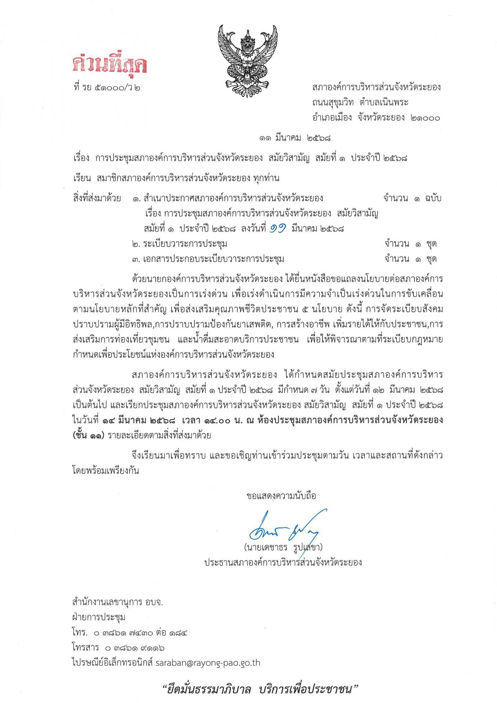 ประชุมสภาองค์การบริหารส่วนจังหวัดระยอง สมัยวิสามัญ สมัยที่ 1 ประจำปี ๒๕๖๘.pdf
