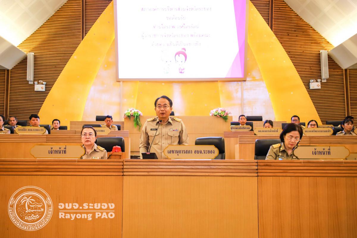 วันที่ 11 มีนาคม 2568 เวลา 09.00 น. นายไตรภพ วงศ์ไตรรัตน์ ผู้ว่าราชการจังหวัดระยอง เป็นประธานการประชุมสภาองค์การบริหารส่วนจังหวัดระยอง ครั้งแรก โดยมีนายปิยะ ปิตุเตชะ นายกองค์การบริหารส่วนจังหวัดระยอง พร้อมด้วย คณะผู้บริหาร สมาชิกสภาองค์การบริหารส่วนจังหวัดระยอง หัวหน้าส่วนราชการและข้าราชการในสังกัดองค์การบริหารส่วนจังหวัดระยอง เข้าร่วมการประชุมสภาฯ โดยพร้อมเพรียงกัน ซึ่งมีระเบียบวาระการประชุมอยู่ 6 วาระ อาทิ