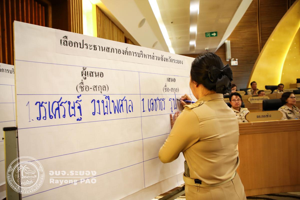 - ระเบียบวาระที่ 2 การเลือกประธานสภาองค์การบริหารส่วนจังหวัดระยอง ซึ่งผลการคัดเลือกปรากฏว่า นายเดชาธร รูปเลขา สมาชิกสภาองค์การบริหารส่วนจังหวัดระยอง เขต 1 อำเภอนิคมพัฒนา ได้รับการคัดเลือก