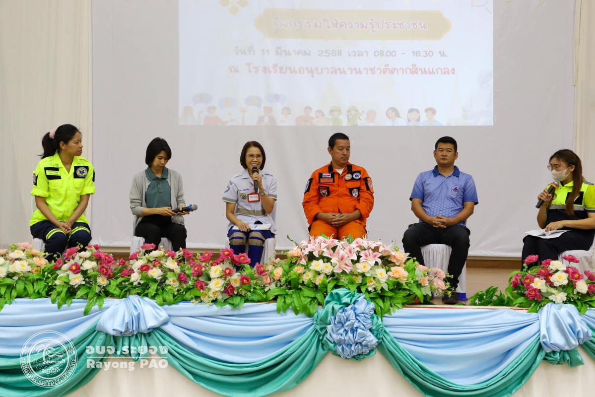 วันที่ 11 มีนาคม 2568 เวลา 09.00 น. กองสาธารณสุข จัดโครงการพัฒนาศักยภาพเครือข่ายหน่วยปฏิบัติงานด้านการแพทย์ฉุกเฉินจังหวัดระยอง ศูนย์รับแจ้งเหตุและจ่ายงานการแพทย์ฉุกเฉิน (1669) องค์การบริหารส่วนจังหวัดระยอง ซึ่งเป็นการอบรมภาคประชาชนของอำเภอแกลง โดยมีนายกันตภณ สุขสงค์ นายอำเภอแกลง เป็นประธานในพิธีเปิดโครงการฯ โดยกิจกรรมภายในโครงการฯได้มีการบรรยายจากนางสาวสุชารีย์ หิรัญศรี แพทย์เวชศาสตร์ฉุกเฉิน โรงพยาบาลระยอง ในหัวข้อ ”การประเมินและคัดแยกผู้ป่วยฉุกเฉินกับภาวะฉุกเฉินที่พบบ่อยและการดูแลเบื้องต้น“ การเสวนาในหัวข้อ “เสียงสะท้อนการแพทย์ฉุกเฉินในปัจจุบันสู่อนาคตที่มุ่งหมาย” กิจกรรมแบ่งกลุ่ม และการมอบเกียรติบัตรแก่ผู้เข้าอบรม ณ หอประชุมโรงเรียนนานาชาติตากสินแกลง