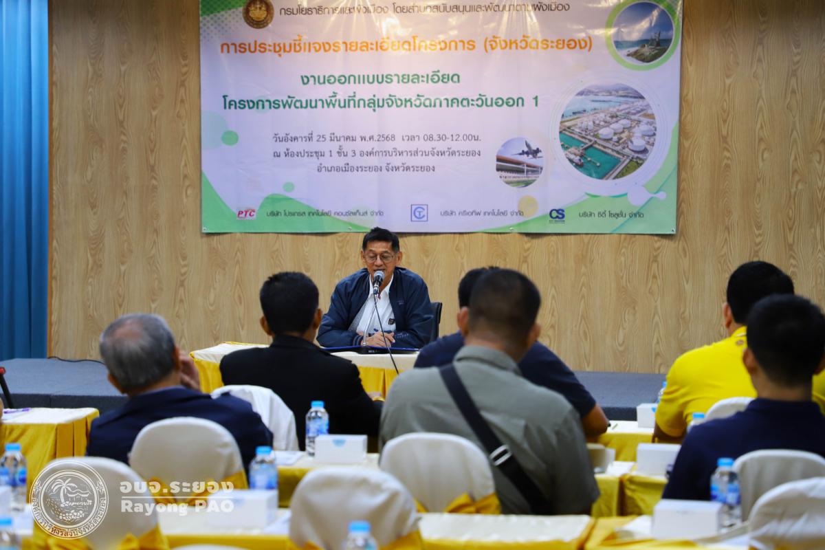 วันที่ 25 มีนาคม พ.ศ. 2568 เวลา 08.30 น. นายปิยะ ปิตุเตชะ นายกองค์การบริหารส่วนจังหวัดระยอง เป็นประธานการประชุมชี้แจงรายละเอียดโครงการ (จังหวัดระยอง) งานออกแบบรายละเอียด โครงการพัฒนาพื้นที่กลุ่มจังหวัดภาคตะวันออก 1 พร้อมด้วย นายประสานต์ พฤกษาชาติ รองนายกองค์การบริหารส่วนจังหวัดระยอง (2) ผู้นำชุมขน และเจ้าหน้าที่จากหน่วยที่เกี่ยวข้องเข้าร่วมประชุมโดยพร้อมเพรียงกัน โดยมีนายไพศาล ปรางศรี โยธาธิการและผังเมืองระยอง เป็นผู้กล่าวรายงาน ณ ห้องประชุม 1 ชั้น 3 องค์การบริหารส่วนจังหวัดระยอง