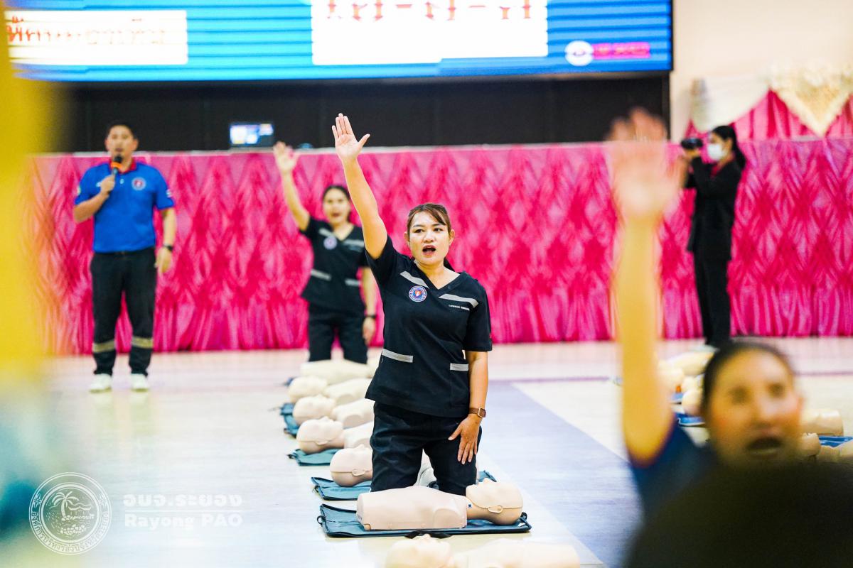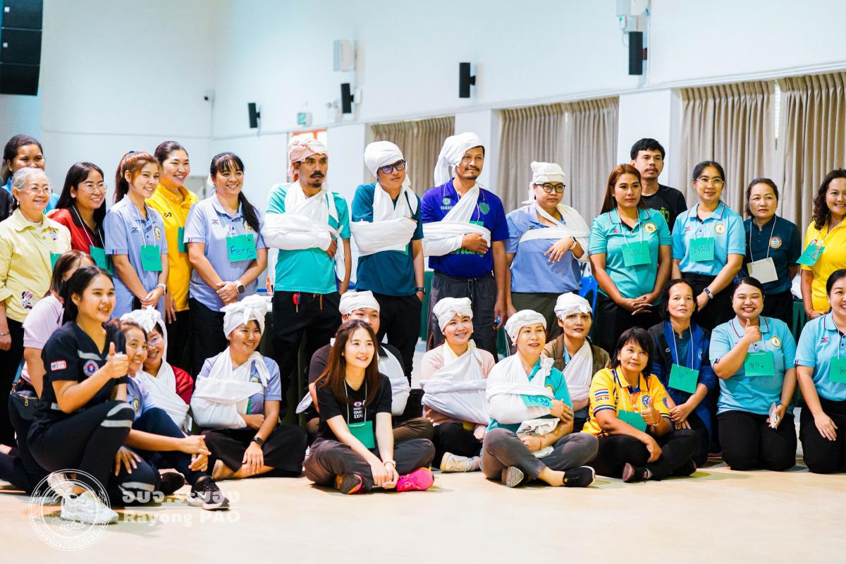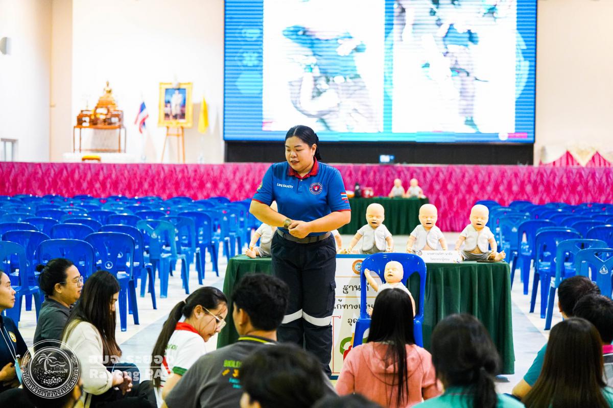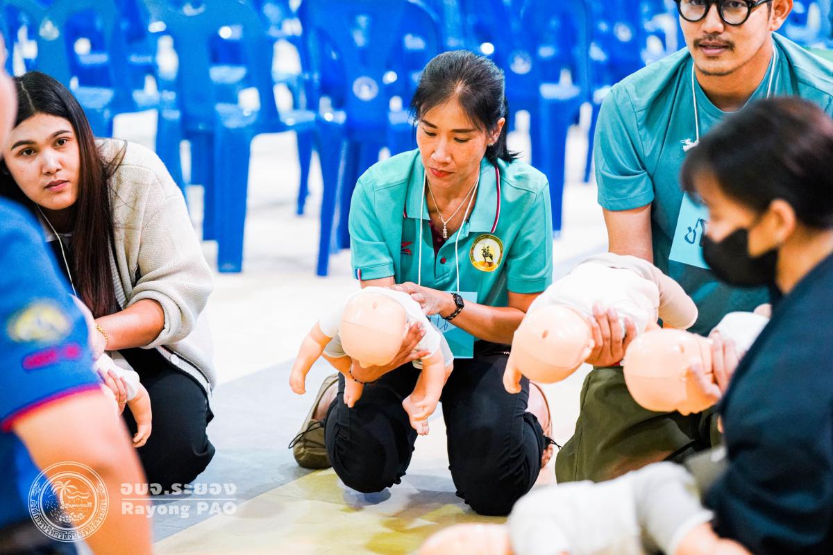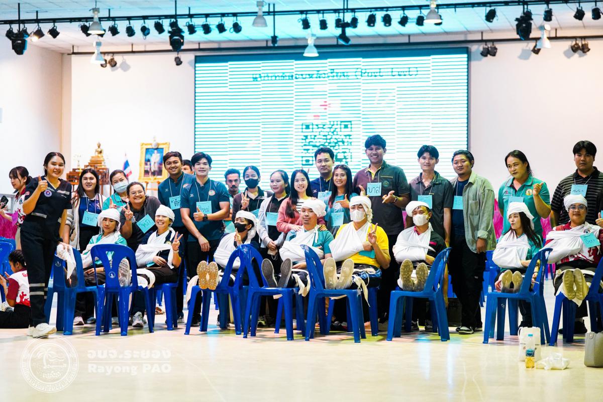 วันที่ 31 มีนาคม 2568 เวลา 08.00 น. กองสาธารณสุข จัดโครงการอบรมเชิงปฏิบัติการปฐมพยาบาลเบื้องต้นและการช่วยฟื้นคืนชีพขั้นพื้นฐาน รุ่นที่ 3 เพื่อให้ครูและบุคลากรทางการศึกษาได้รับความรู้รวมถึงทักษะในการปฐมพยาบาลเบื้องต้นและการช่วยชีวิตอย่างถูกต้อง โดยมี นายกิตติ เกียรติ์มนตรี รองนายกองค์การบริหารส่วนจังหวัดระยอง (1) เป็นประธานในพิธีเปิดโครงการฯ พร้อมด้วย นายสุริยะ ศิริวัฒน์ ผู้อำนวยการกองสาธารณสุข เป็นผู้กล่าววัตถุประสงค์ของการจัดโครงการฯ และเจ้าหน้าที่ที่เกี่ยวข้องเข้าร่วมโครงการฯ โดยพร้อมเพรียงกัน ซึ่งภายในโครงการฯ มีการบรรยายให้ความรู้ในหัวข้อ “การแจ้งเหตุฉุกเฉินและหลักประกันการประเมินผู้ป่วยเบื้องต้น” พร้อมสาธิตวิธีการช่วยฟื้นคืนชีพขั้นพื้นฐาน (CPR) ร่วมกับการใช้เครื่องกระตุกหัวใจด้วยไฟฟ้าชนิดอัตโนมัติ (AED) “การแก้ทางเดินหายใจถูกอุดกลั้น (Choking) “การปฐมพยาบาลเบื้องต้น กรณีมีแผล/การแตกหักของกระดูก และในช่วงบ่ายได้แบ่งกลุ่มฝึกปฏิบัติจำนวน 6 กลุ่ม ณ โรงเรียนมัธยมตากสินระยอง