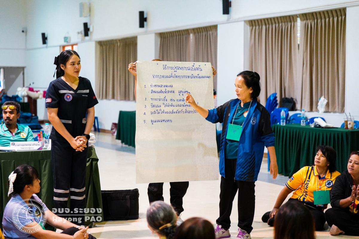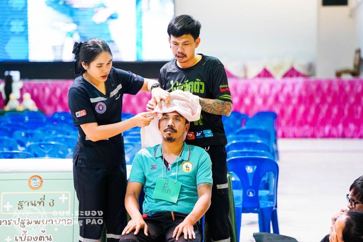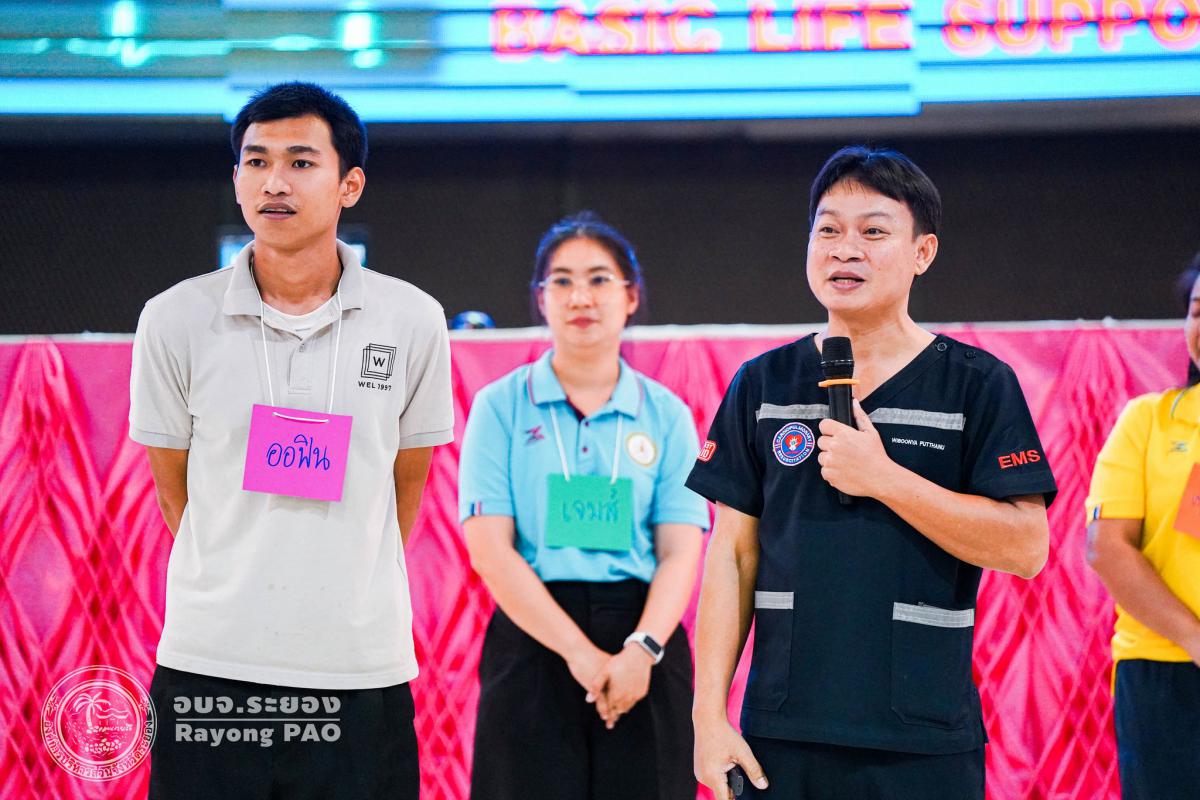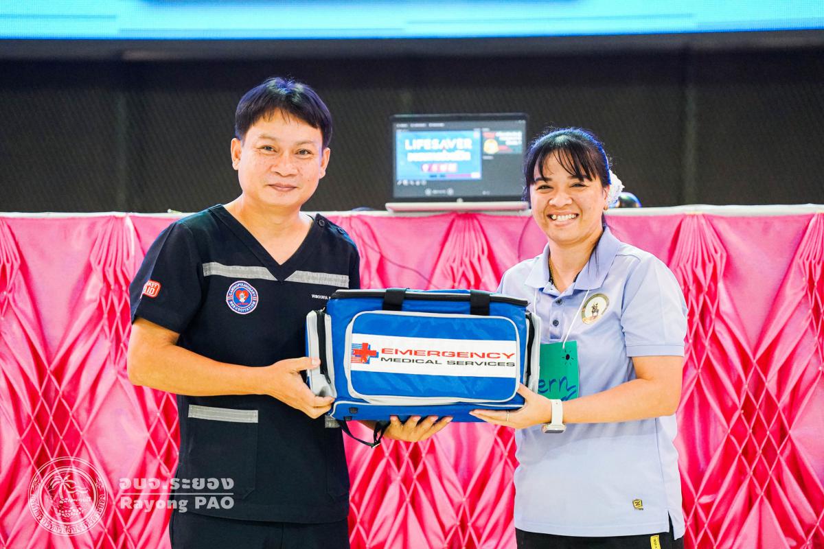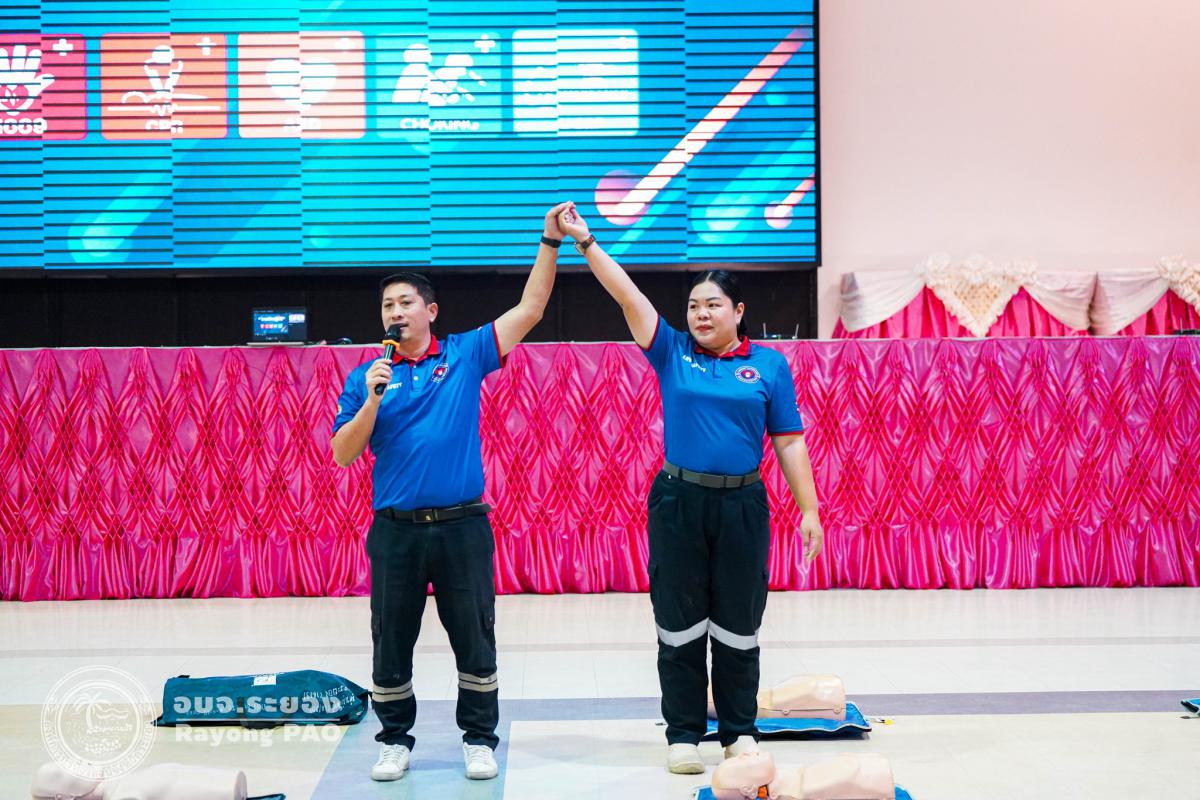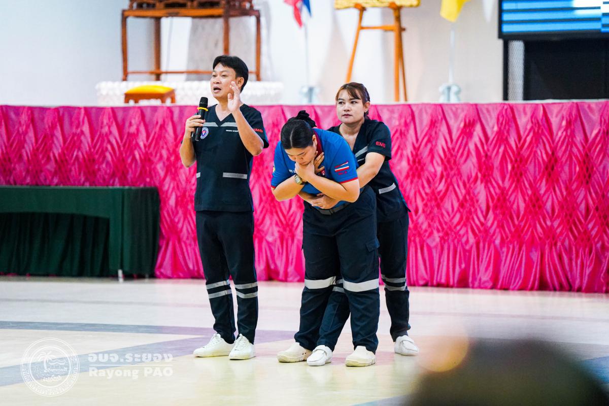 วันที่ 31 มีนาคม 2568 เวลา 08.00 น. กองสาธารณสุข จัดโครงการอบรมเชิงปฏิบัติการปฐมพยาบาลเบื้องต้นและการช่วยฟื้นคืนชีพขั้นพื้นฐาน รุ่นที่ 3 เพื่อให้ครูและบุคลากรทางการศึกษาได้รับความรู้รวมถึงทักษะในการปฐมพยาบาลเบื้องต้นและการช่วยชีวิตอย่างถูกต้อง โดยมี นายกิตติ เกียรติ์มนตรี รองนายกองค์การบริหารส่วนจังหวัดระยอง (1) เป็นประธานในพิธีเปิดโครงการฯ พร้อมด้วย นายสุริยะ ศิริวัฒน์ ผู้อำนวยการกองสาธารณสุข เป็นผู้กล่าววัตถุประสงค์ของการจัดโครงการฯ และเจ้าหน้าที่ที่เกี่ยวข้องเข้าร่วมโครงการฯ โดยพร้อมเพรียงกัน ซึ่งภายในโครงการฯ มีการบรรยายให้ความรู้ในหัวข้อ “การแจ้งเหตุฉุกเฉินและหลักประกันการประเมินผู้ป่วยเบื้องต้น” พร้อมสาธิตวิธีการช่วยฟื้นคืนชีพขั้นพื้นฐาน (CPR) ร่วมกับการใช้เครื่องกระตุกหัวใจด้วยไฟฟ้าชนิดอัตโนมัติ (AED) “การแก้ทางเดินหายใจถูกอุดกลั้น (Choking) “การปฐมพยาบาลเบื้องต้น กรณีมีแผล/การแตกหักของกระดูก และในช่วงบ่ายได้แบ่งกลุ่มฝึกปฏิบัติจำนวน 6 กลุ่ม ณ โรงเรียนมัธยมตากสินระยอง