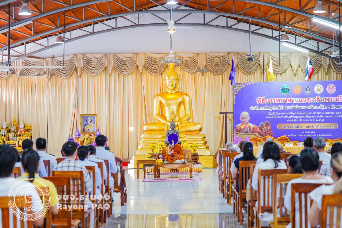 วันที่ 1 เมษายน 2568 เวลา 08.30 น. ณ วัดเนินพระ อำเภอเมือง จังหวัดระยอง นายสุรินทร์ แสงทอง ปลัดองค์การบริหารส่วนจังหวัดระยอง เข้าร่วมกิจกรรมบรรพชาสามเณรเฉลิมพระเกียรติสมเด็จพระกนิษฐาธิราชเจ้า กรมสมเด็จพระเทพรัตนราชสุดาฯ สยามบรมราชกุมารี เนื่องในโอกาสทรงเจริญพระชนมายุ 70 พรรษา ในวันที่ 2 เมษายน 2568 ภายใต้โครงการเสริมสร้างคุณธรรมจริยธรรม ค่านิยมและความเป็นไทย ประจำปีงบประมาณ พ.ศ. 2568 โดยมี นายไตรภพ วงศ์ไตรรัตน์ เป็นประธานในพิธี พร้อมด้วย นายวรวุฒิ ด่านสมพงศ์ วัฒนธรรมจังหวัดระยอง เป็นผู้กล่าวรายงาน โดยกิจกรรมดังกล่าวจัดขึ้นโดยสำนักงานวัฒนธรรมจังหวัดระยอง ภายใต้โครงการเสริมสร้างคุณธรรมจริยธรรม ค่านิยมและความเป็นไทย ประจำปีงบประมาณ 2568 เพื่อเฉลิมพระเกียรติสมเด็จพระกนิษฐาธิราชเจ้า กรมสมเด็จพระเทพรัตนราชสุดาฯ สยามบรมราชกุมารี และร่วมสืบสานประเพณีการบรรพชาให้คงอยู่คู่สังคมไทย รวมไปถึงยังเป็นการส่งเสริมให้เด็กและเยาวชนได้ศึกษาฝึกฝนอบรมหลักธรรมคำสอนทางพระพุทธศาสนา หลักปรัชญาของเศรษฐกิจพอเพียง ซึ่งจะช่วยให้เกิดการปรับเปลี่ยนค่านิยมให้เป็นคนดี มีคุณธรรมจริยธรรม มีวินัย มีจิตสาธารณะ มีพฤติกรรมที่พึงประสงค์ เป็นพลเมืองที่ดีมีคุณภาพต่อไป