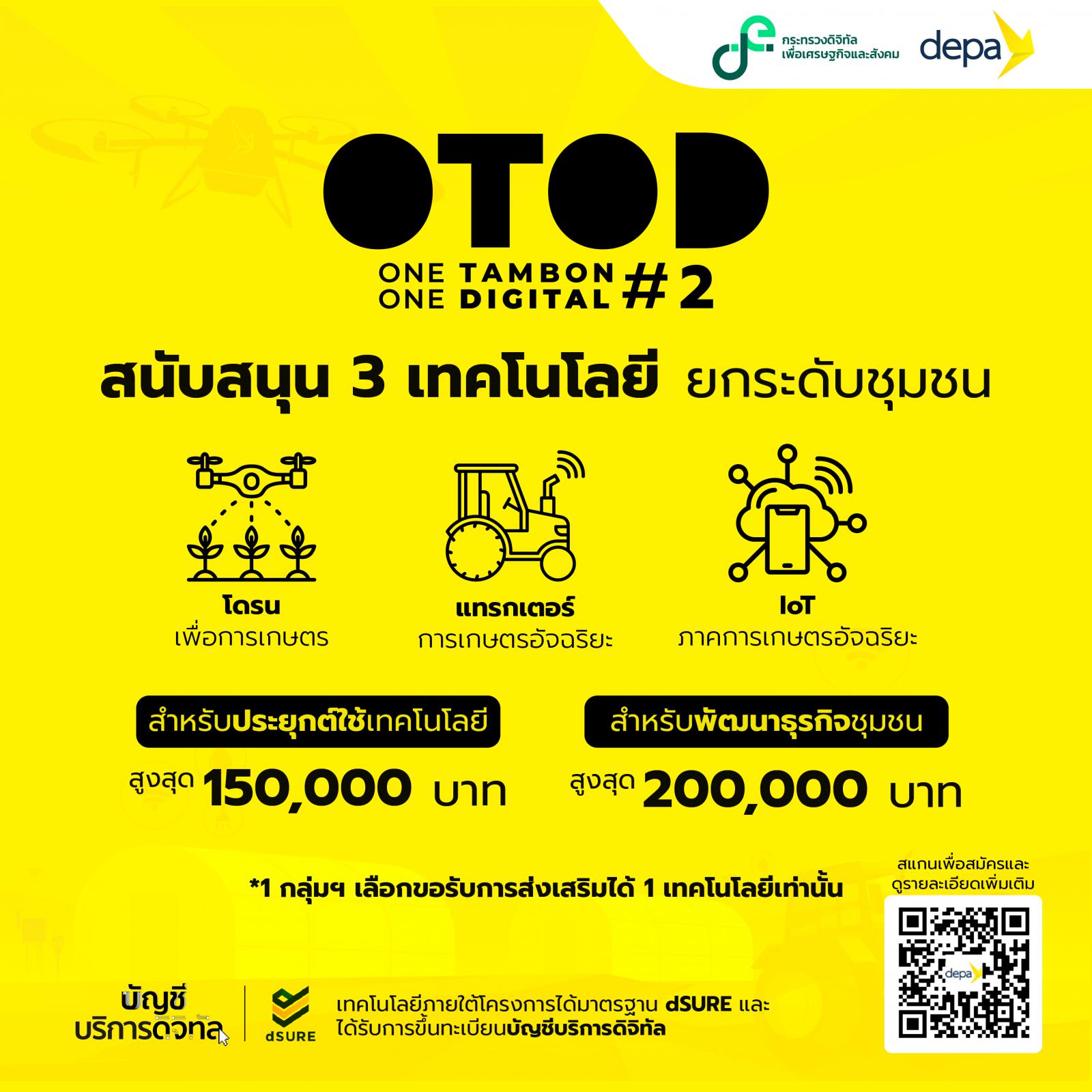 ประกาศสำนักงานส่งเสริมเศรษฐกิจดิจิทัล เรื่อง ประกาศรายชื่อผู้ประกอบการเทคโนโลยีดิจิทัล ที่ผ่านคุณสมบัติเข้าร่วม (One Tambon One Digital:OTOD#2)