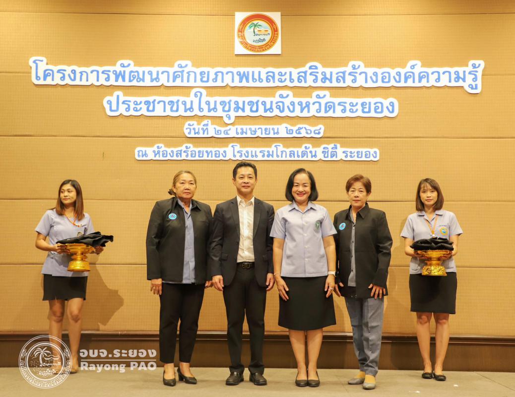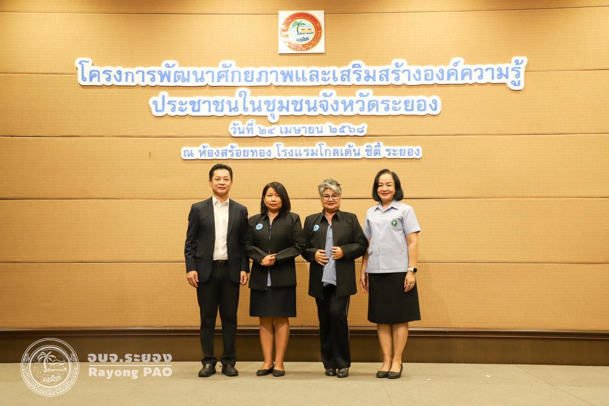 วันที่ 24 เมษายน 2568 เวลา 09.00 น. นายกิตติ เกียรติ์มนตรี รองนายกองค์การบริหารส่วนจังหวัดระยอง (1) เป็นประธานในพิธีเปิดโครงการพัฒนาศักยภาพและเสริมสร้างองค์ความรู้ประชาชนในชุมชนจังหวัดระยอง รุ่นที่ 1 โดยโครงการดังกล่าวจัดขึ้นเพื่อพัฒนาศักยภาพประชาชนให้มีองค์ความรู้และทักษะในการดูแลสุขภาพอนามัย สามารถนำไปปรับใช้ได้อย่างถูกต้องและเหมาะสม จนถึงระดับที่ดูแลสุขภาพของตนเอง ครอบครัวและชุมชน และแก้ไขปัญหาสาธารณสุขในหมู่บ้าน หรือชุมชนได้ ซึ่งกิจกรรมภายในโครงการฯได้จัดพิธีมอบประกาศนียบัตรให้กับอาสาสมัครสาธารณสุขประจำหมู่บ้านดีเด่น ระดับจังหวัด ประจำปี 2568 การบรรยายให้ความรู้ในหัวข้อ "Happy Healthy เสริมพลังสร้างสุขภาพสู่ประชาชน" และหัวข้อ "รู้ภัยเสี่ยง เลี่ยงโรคไม่ติดต่อ" โดยนายบุญโชค เกาะแก้ว ตำแหน่ง เจ้าพนักงานสาธารณสุขชำนาญงาน สำนักงานสาธารณสุขจังหวัดระยอง ณ โรงแรมโกลเด้น ซิตี้ ระยอง