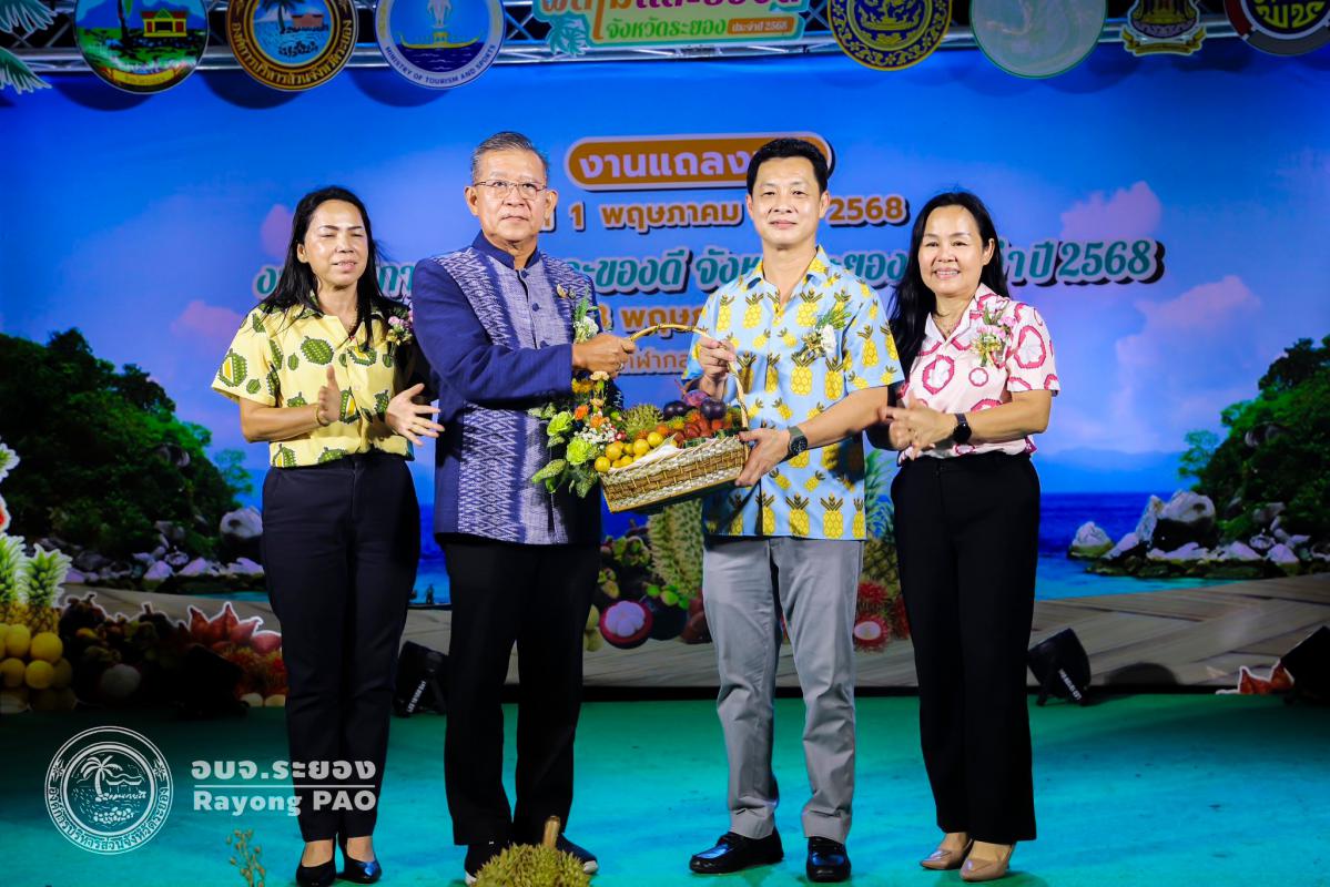 วันที่ 1 พฤษภาคม 2568 เวลา 17.00 น. นายกัฬชัย เทพวรชัย รองผู้ว่าราชการจังหวัดระยอง, นายกิตติ เกียรติ์มนตรี รองนายกองค์การบริหารส่วนจังหวัดระยอง (1) ให้เกียรติร่วมแถลงข่าวการจัดงานเทศกาลผลไม้และของดีจังหวัดระยอง ประจำปี 2568 พร้อมด้วย คณะผู้บริหาร หัวหน้าส่วนราชการ ประชาชนและผู้ที่เกี่ยวข้องเข้าร่วมงานอย่างพร้อมเพรียง ณ สวนสุภัทราแลนด์ ตำบลหนองละลอก อำเภอบ้านค่าย จังหวัดระยอง