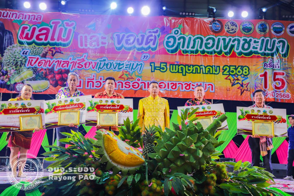พิธีเปิดงานเทศกาลผลไม้และของดีอำเภอเขาชะเมา "เปิดเขา เล่าเรื่อง เมืองชะเมา" ครั้งที่ 15 ประจำปี 2568