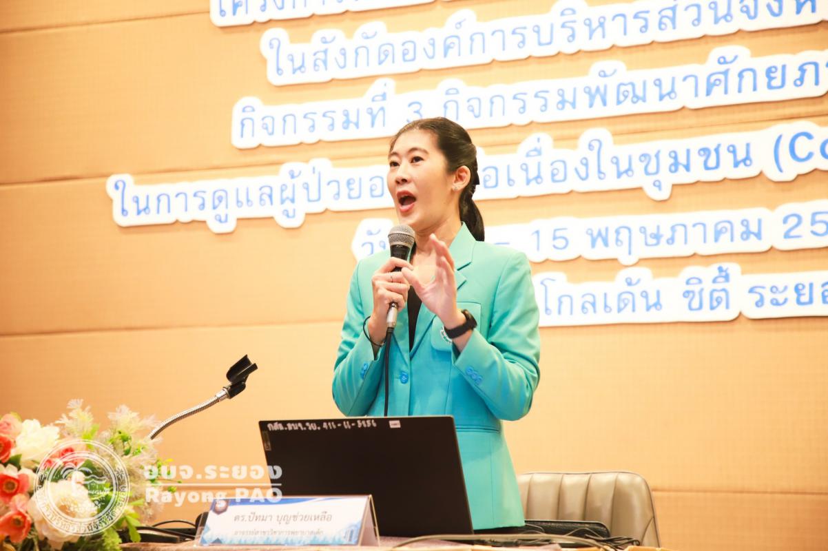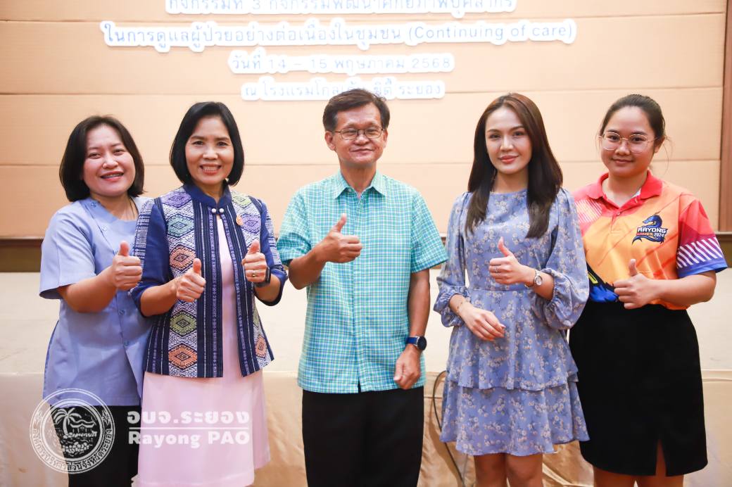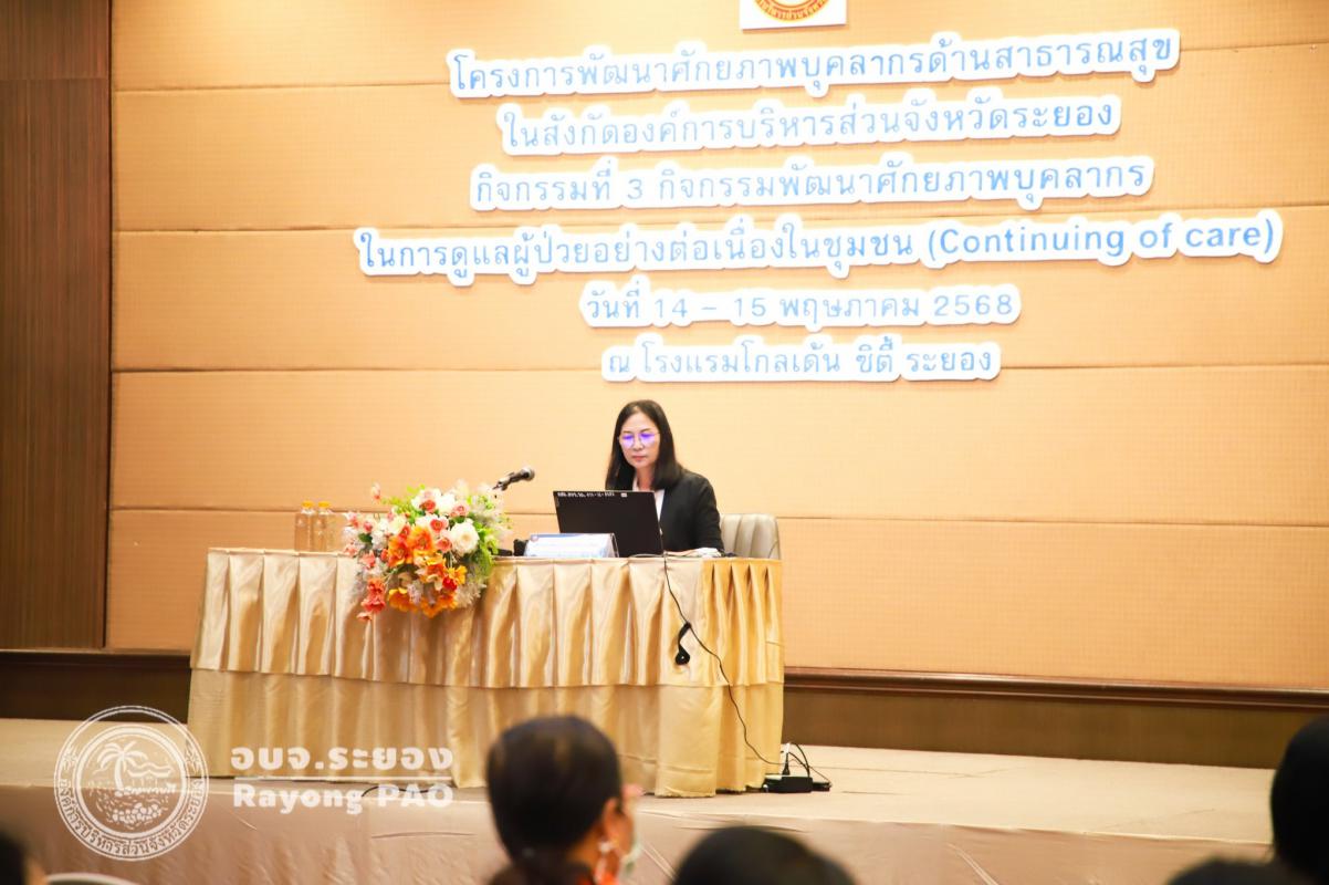 วันที่ 15 พฤษภาคม 2568. เวลา 09.00 น. กองสาธารณสุข องค์การบริหารส่วนจังหวัดระยอง จัดโครงการพํฒนาศักยภาพบุคลากรด้านสาธารณสุขฯ โดยมีภาคีเครือข่ายด้านสาธารณสุขเข้าร่วมโครงการ 200 คน ณ โรงแรมโกลเด้น ซิตี้ ระยอง ซึ่งรับฟังบรรยายในหัวข้อเรื่อง ความสําคัญของการเยี่ยมบ้าน นโยบาย เกณฑ์มาตราฐานตัวชี้วัด โดย ผศ. ดร.พรฤดี นิธิรัตน์ ผอ.วิทยาลัยพยาบาลพระปกเกล้า, เรื่อง การเขียนบันทึกรายงานการเยี่ยมบ้าน โดย ผศ.ราตรี อร่ามศิลป์, เรื่อง การเยี่ยมบ้านหญิงตั้งครรภ์ปกติและการตั้งครรภ์ที่มีภาวะเสี่ยง มารดา ทารกหลังคลอด และการเลี้ยงลูกด้วยนมแม่ โดยนางขนิษฐา เมฆกมล อ.สาขาวิชาพยาบาลมารดาทารก, เรื่อง การดูแลครอบครัวและผู้ป่วยจิตเวชในชุมชน การเยี่ยมบ้านผู้ป่วยที่มีปัญหาสุขภาพจิต และผู้ป่วยจิตเวช โดย ดร.ปัทมา บุญช่วยเหลือ อ.สาขาวิชาพยาบาลเด็ก, เรื่อง การดูแลผู้ป่วยระยะสุดท้ายในชุมชน การจัดการความปวดและการให้ยาลดปวด โดย พญ.ปราย ทองจันทึก แพทย์เวชศาสตร์ครอบครัวฯ