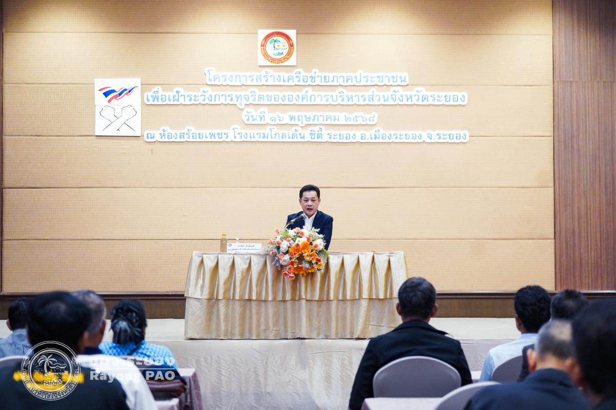 วันที่ 16 พฤษภาคม 2568 เวลา 09.30 น. นายกิตติ เกียรติ์มนตรี รองนายกองค์การบริหารส่วนจังหวัดระยอง (1) เป็นประธานเปิดโครงการสร้างเครือข่ายภาคประชาชนเพื่อเฝ้าระวังการทุจริตขององค์การบริหารส่วนจังหวัดระยอง โดยมี นายสุรินทร์ แสงทอง ปลัดองค์การบริหารส่วนจังหวัดระยอง เป็นผู้กล่าววัตถุประสงค์ของการจัดโครงการฯ พร้อมด้วย คณะผู้บริหาร สมาชิกสภาองค์การบริหารส่วนจังหวัดระยอง ผู้อำนวยการกอง และผู้ที่ที่เกี่ยวข้องเข้าร่วมพิธีเปิดโครงการฯ โดยพร้อมเพรียงกัน ณ โรงแรมโกลเด้น ซิตี้ ระยอง