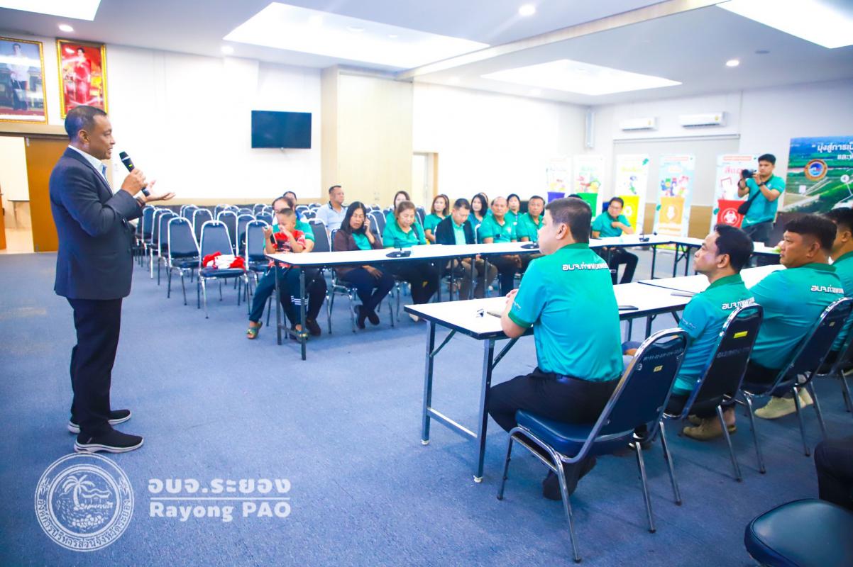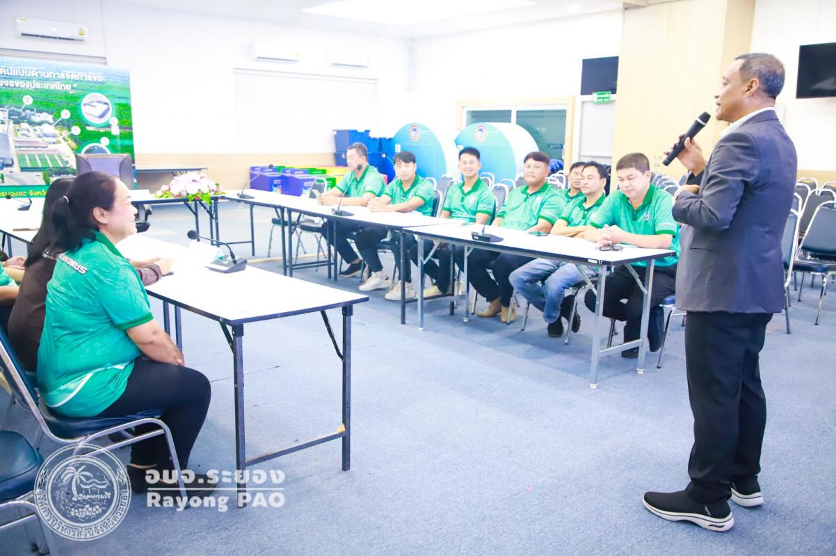 วันที่ 27 พฤษภาคม 2568 เวลา 09.00 น. นายพิรุณ เหมะรักษ์ ผู้ทรงคุณวุฒิเฉพาะด้านพลังงานและสิ่งแวดล้อม อบจ.ระยอง กล่าวต้อนรับคณะศึกษาดูงานจากอบจ.กำแพงเพชร โดยมีนายชัยยศ ตั้งนิยม ประธานสภาฯ นำคณะผู้บริหาร สมาชิกสภา ข้าราชการ พนักงาน จำนวน 37 คน เข้าศึกษาดูงาน ณ ศูนย์กำจัดขยะมูลฝอยแบบครบวงจร จังหวัดระยอง โดยมีเจ้าหน้าที่จากกองสาธารณสุข อบจ.ระยอง และเจ้าหน้าที่จากบริษัท GPSC ร่วมให้การต้อนรับพร้อมทั้งบรรยายเกี่ยวกับการบริหารจัดการขยะที่สามารถแปลงเป็นเชื้อเพลิง RDF ได้ พร้อมกันนี้ได้นำคณะเข้าเยี่ยมชมพื้นที่ภายในศูนย์กำจัดขยะมูลฝอยฯ และศูนย์การเรียนรู้แปลงขยะเป็นพลังงาน (Waste to Energy Learning Center)