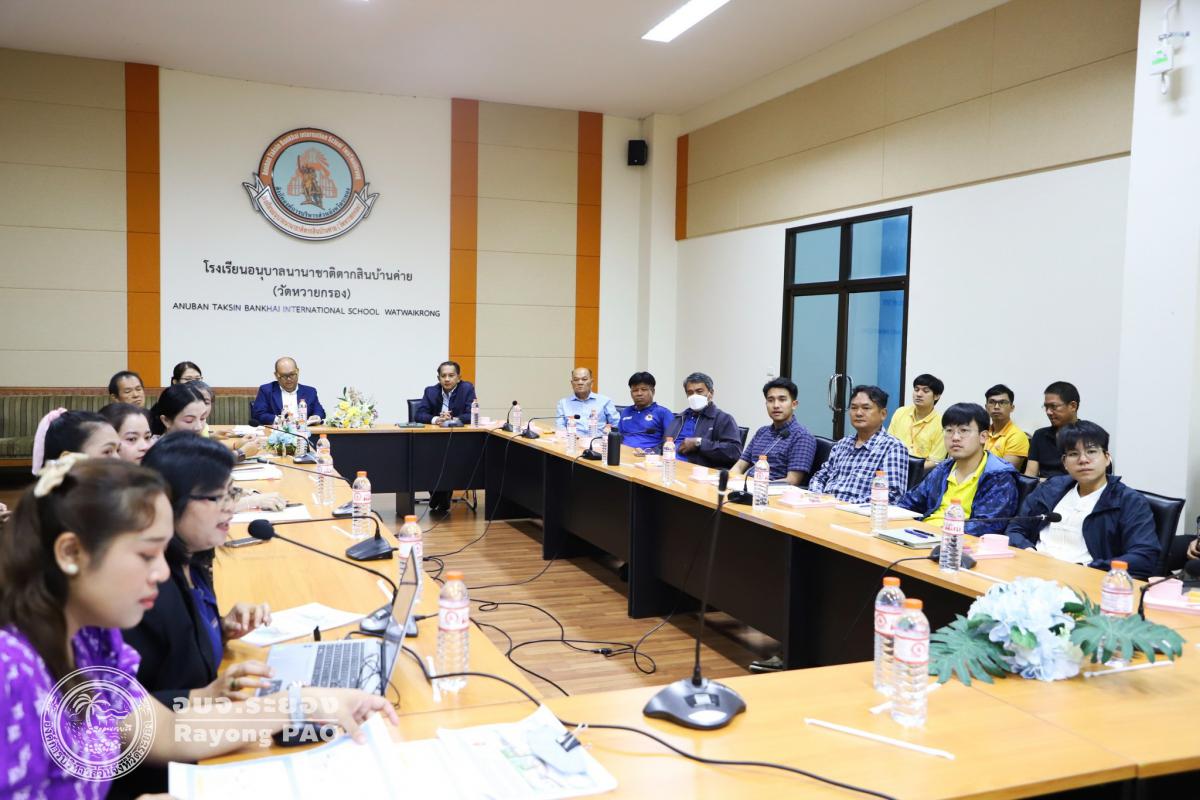 วันที่ 27 พฤษภาคม 2568 เวลา 09.00 น. นายประสานต์ พฤกษาชาติ พร้อมด้วย นายชนะ ปิตุเตชะ สมาชิกสภา เขต 1 อำเภอบ้านค่าย, นายวัชรพงษ์ สำราญรมย์ ผู้อำนวยการสถานศึกษาโรงเรียนอนุบาลนานาชาติตากสินบ้านค่าย (วัดหวายกรอง), นางสดใส ดุลยา ศึกษานิเทศก์วิทยฐานะศึกษานิเทศชำนาญการ รักษาราชการแทนผู้อำนวยการกองการศึกษา ศาสนา และวัฒนธรรม คณะผู้บริหาร หัวหน้าส่วนราชการ และผู้ที่เกี่ยวข้องเข้าร่วมประชุมอย่างพร้อมเพรียง โดยการประชุมครั้งนี้มีวัตถุประสงค์เพื่อเพิ่มพูนศักยภาพการบริหารจัดการด้านหลักสูตร งานวิชาการ และด้านการจัดระบบสภาพแวดล้อม เพื่อศึกษาแลกเปลี่ยนเรียนรู้เกี่ยวกับการพัฒนาการศึกษาจากสถานศึกษาที่จัดการเรียนการสอนในรูปแบบนานาชาติ และนำมาปรับใช้ในการบริหารจัดการให้สอดคล้องกับบริบทของสถานศึกษาในสังกัดองค์การบริหารส่วนจังหวัดระยอง ณ โรงเรียนอนุบาลนานาชาติตากสินบ้านค่าย (วัดหวายกรอง)