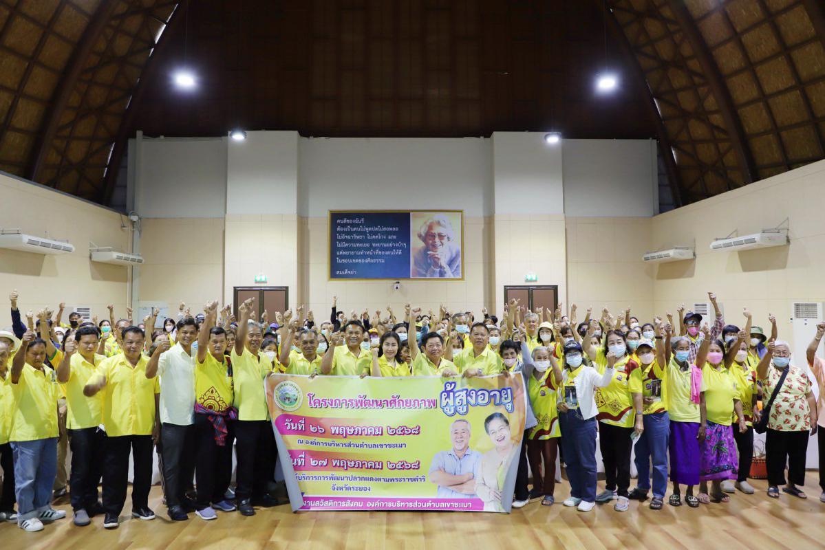 ยินดีต้อนรับ องค์การบริหารส่วนตำบลเขาชะเมา จังหวัดระยอง นำผู้สูงอายุในตำบลของตนเองมายังเมืองพระมหาชนก เจ้าหน้าที่ต้อนรับตั้งแต่ทุกท่านลงจากรถ เนื่องจากวันนี้สภาพอากาศฝนตก เจ้าหน้าที่ต้องดูแลผู้สูงอายุ และทุกท่านที่มาเยือนเป็นพิเศษ เจ้าหน้าที่ทุกท่านมีน้ำใจนำร่มไปรับไม่กังวลถึงความเปียก เพราะทำด้วยความตั้งใจ เต็มใจดูแลทุกท่านทุกฤดูกาล นับว่าเป็นความดี และเห็นความสำคัญของผู้มาเยือน เมืองพระมหาชนก ถัดมาทุกท่านจะได้เข้าไปยังอาคารอบรมและการเรียนรู้ อาคารปูทะเลย์มหาวิชชาลัย ต้อนรับโดยพิธีกรเสียงใส และเจ้าหน้าที่ทุกท่าน ให้การต้อนรับ ทุกท่านจะได้ทำกิจกรรมสันทนาการ กิจกรรมที่ให้ความสามัคคี ความบันเทิง และชมคลิปวิดีโอ แนะนำเมืองพระมหาชนก ซึ่งเป็นส่วนหนึ่งขององค์การบริหารส่วนจังหวัดระยอง ร่วมร้องเพลงสรรเสริญพระบารมี หลังจากจบกิจกรรมที่อาคารอบรมและการเรียนรู้ ทุกท่านจะได้นั่งรถรางชมวิวบรรยากาศ และ เข้าชมอาคารพระมหาชนก ที่รวบรวมจิตวิญญาณน้ำพระทัยของในหลวงรัชกาลที่ ๙ ก่อนกลับร่วมรับประทานอาหารมื้อกลางวันที่อาคารมิถิลา ซึ่งด้านข้างสามารถชมวิวสวนดอกไม้สามฤดู ๓ ฤดู เรียกได้ว่าทุกที่ของเมืองพระมหาชนกมีความสวยงามเป็นอย่างยิ่ง ไว้มีโอกาสกลับมายังเมืองพระมหาชนกอีกครั้ง ณ อาคารพระมหาชนก อ่างเก็บน้ำดอกกราย อำเภอปลวกแดง จังหวัดระยอง