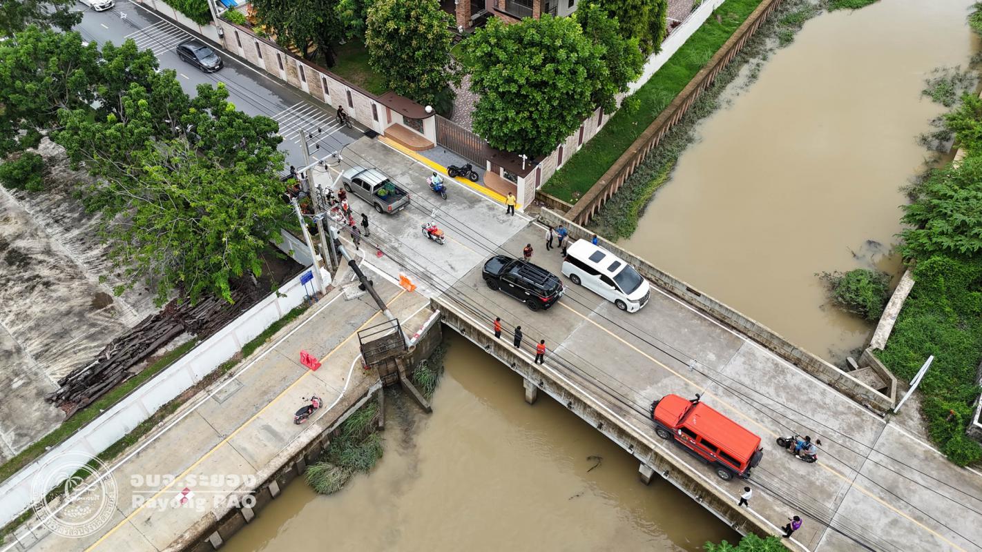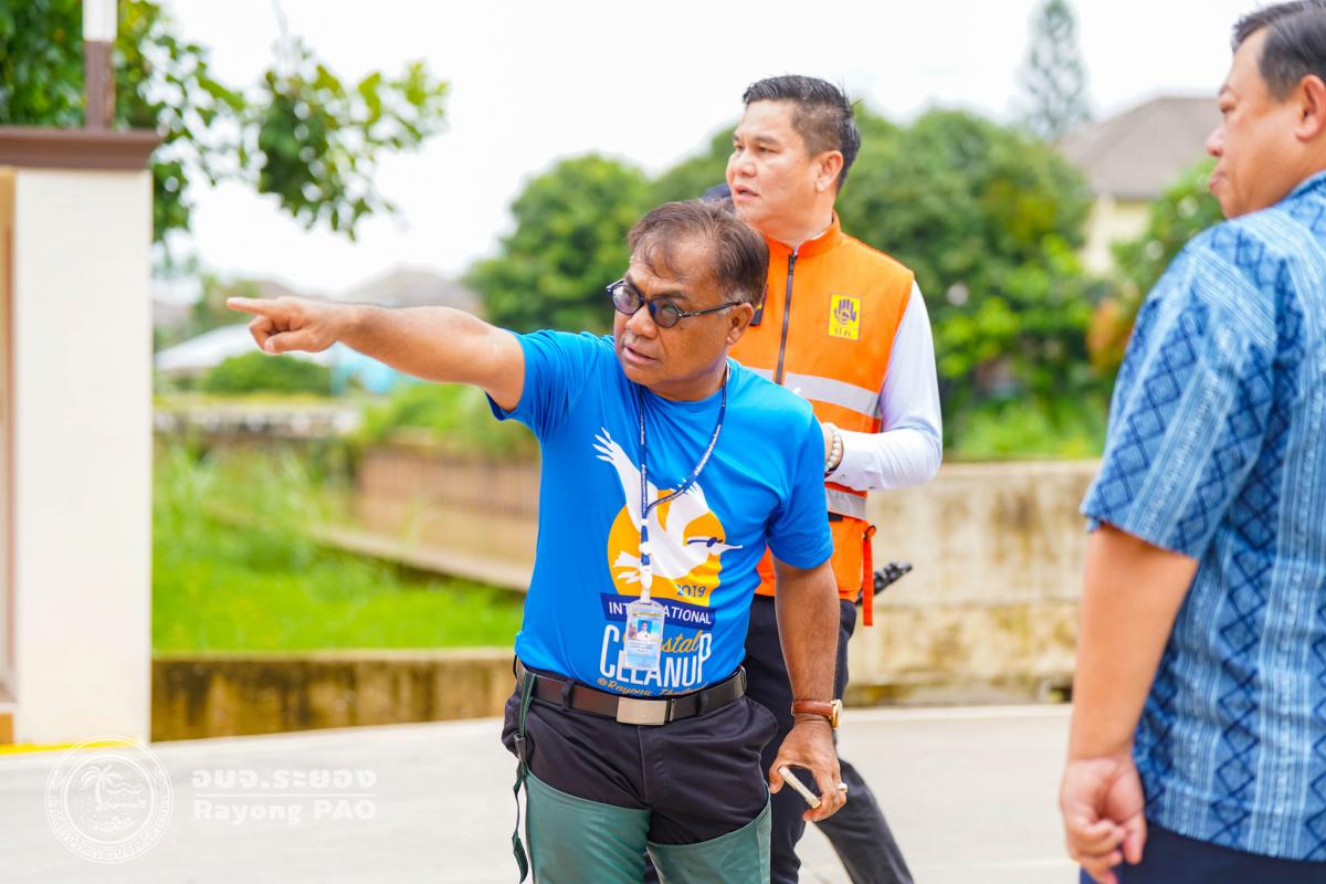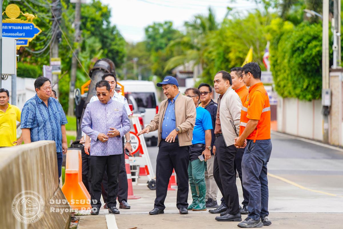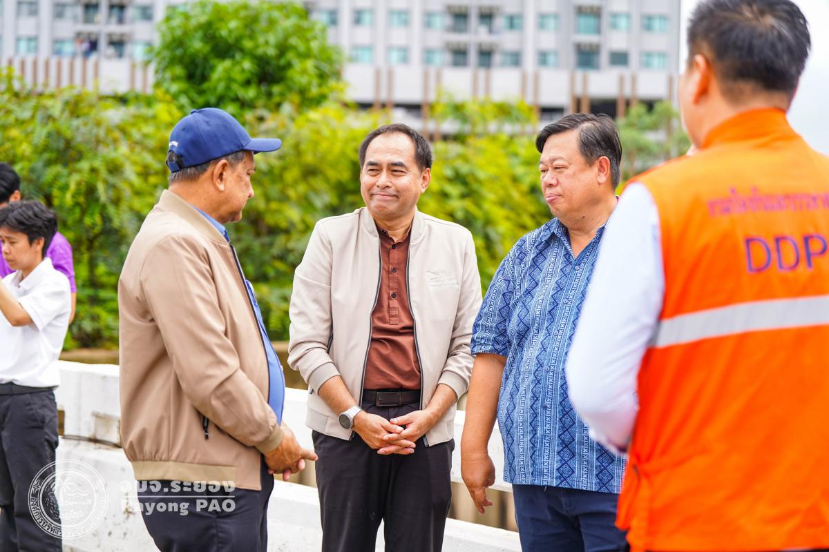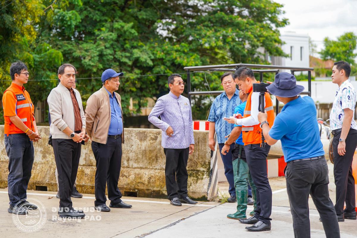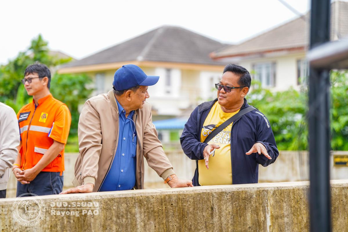 อบจ.ระยองร่วมลงพื้นที่ติดตามสถานการณ์น้ำคลองทับมา บริเวณสะพานหลังศูนย์การค้าเซ็นทรัลระยอง และสะพานแตง