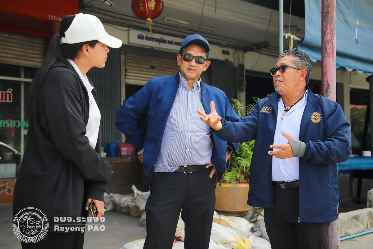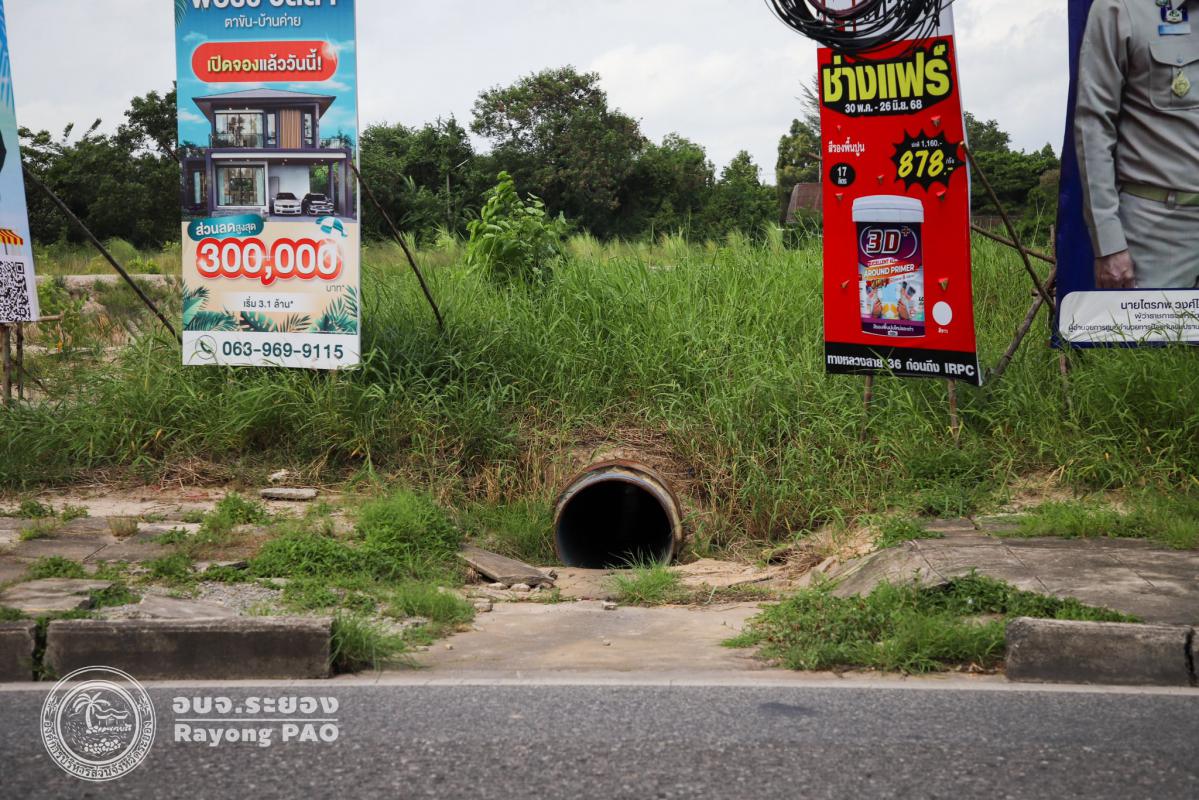 อบจ.ระยองร่วมกับแขวงทางหลวง ลงพื้นที่แก้ไขปัญหาน้ำท่วมบริเวณหน้าวัดเกาะกลอย