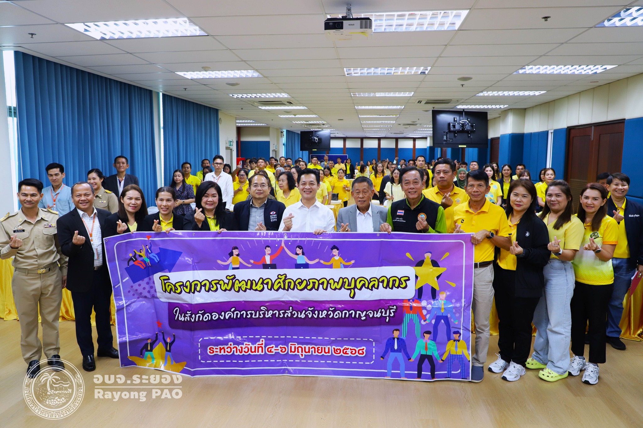 วันที่ 4 มิถุนายน 2568 เวลา 14.00 น. นายกิตติ เกียรติ์มนตรี รองนายกองค์การบริหารส่วนจังหวัดระยอง (1) เป็นประธานการรับคณะศึกษาดูงานจากองค์การบริหารส่วนจังหวัดกาญจนบุรี ณ องค์การบริหารส่วนจังหวัดระยองพร้อมด้วยนายพายัพ ผ่องใส เลขานุการนายกอบจ.ระยอง, นายอรุณ วิชกิจ ผู้เชี่ยวชาญพิเศษด้านการวางแผนและวิเคราะห์นโยบาย คณะผู้บริหาร หัวหน้าส่วนราชการ และเจ้าหน้าที่ที่เกี่ยวข้องเข้าร่วมประชุมอย่างพร้อมเพรียงกัน โดยมีผู้เข้าร่วมโครงการจากองค์การบริหารส่วนจังหวัดกาญจนบุรี นำโดยนางจารีรัตน์ บุญประดิษฐ รองปลัดองค์การบริหารส่วนจังหวัดกาญจนบุรี และคณะผู้บริหารดูงานจากองค์การบริหารส่วนจังหวัดกาญจนบุรีพร้อมด้วยเจ้าหน้าที่องค์การบริหารส่วนจังหวัดกาญจนบุรี จำนวนรวมทั้งสิ้น 104 คน ณ ห้องประชุม 1 ชั้น 3 อบจ.ระยอง วัตถุประสงค์เพื่อพัฒนาศักยภาพของบุคลากรจากองค์การบริหารส่วนจังหวัดกาญจนบุรี เพิ่มพูนความรู้จำเป็นในการปฏิบัติงาน ส่งเสริมการพัฒนาความสามารถด้านการบริหารจัดการ ส่งเสริมการสร้างเครือข่ายการทำงานร่วมกันระหว่างหน่วยงานและชุมชน
