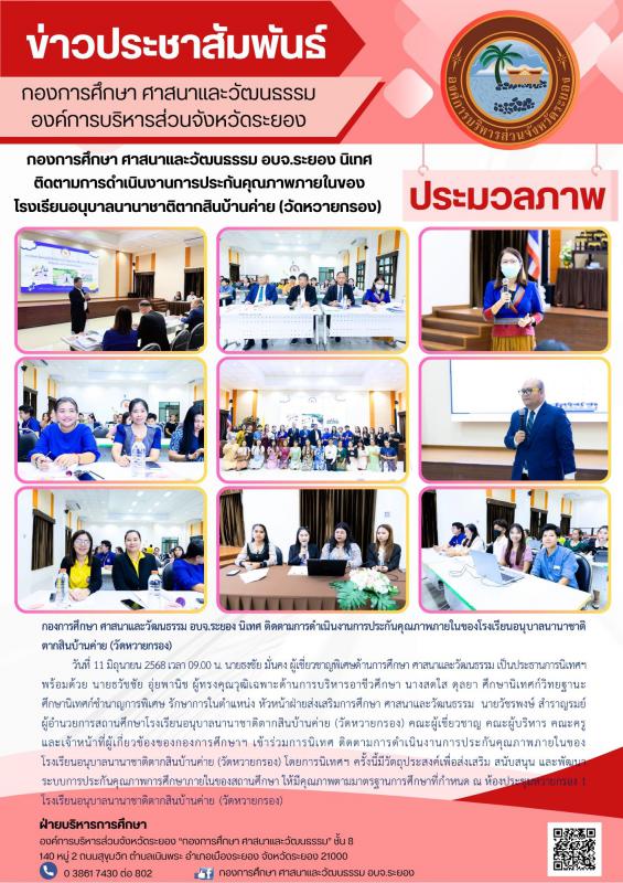 กองการศึกษา ศาสนาและวัฒนธรรม อบจ.ระยอง นิเทศ ติดตามการดำเนินงานการประกันคุณภาพภายในของโรงเรียนอนุบาลนานาชาติตากสินบ้านค่าย (วัดหวายกรอง)
