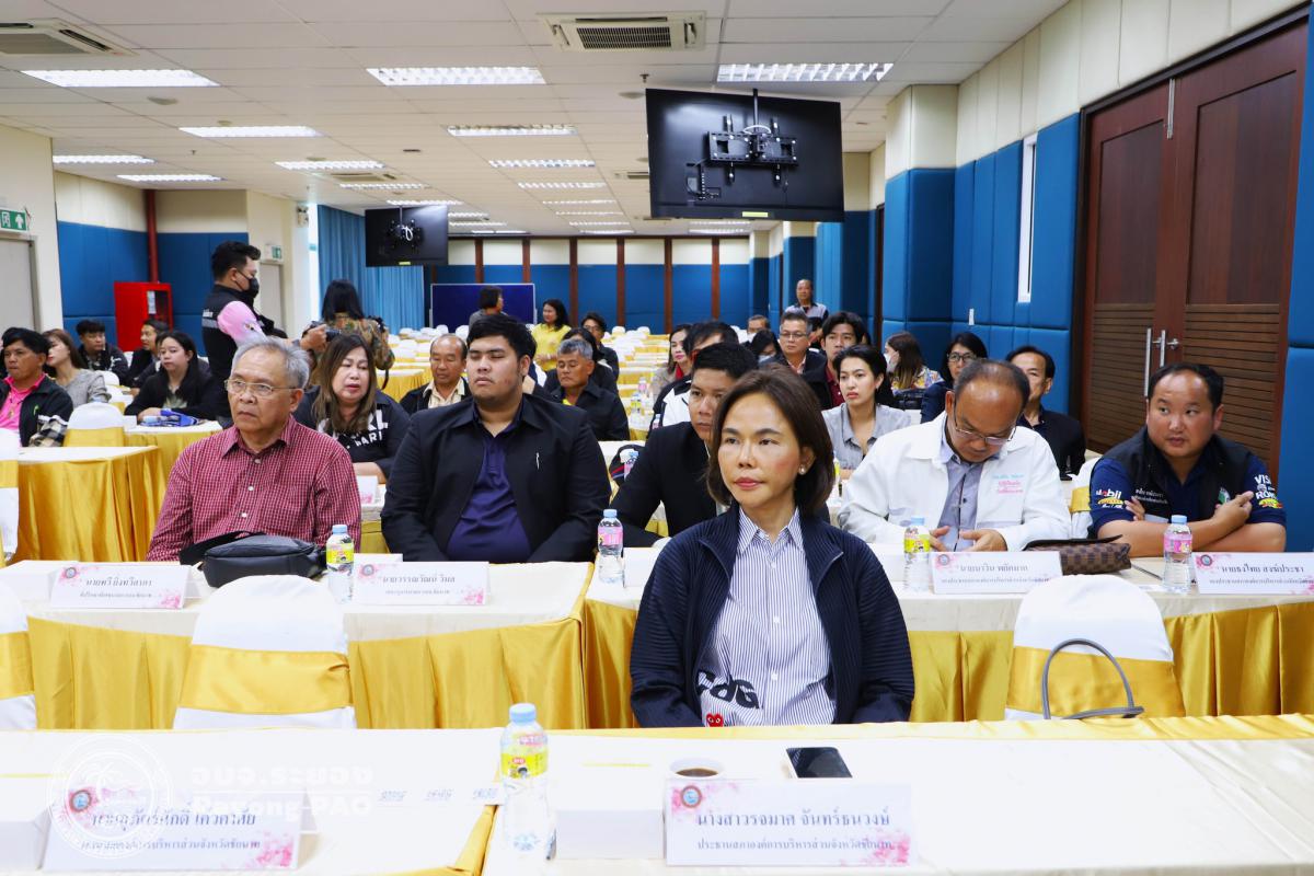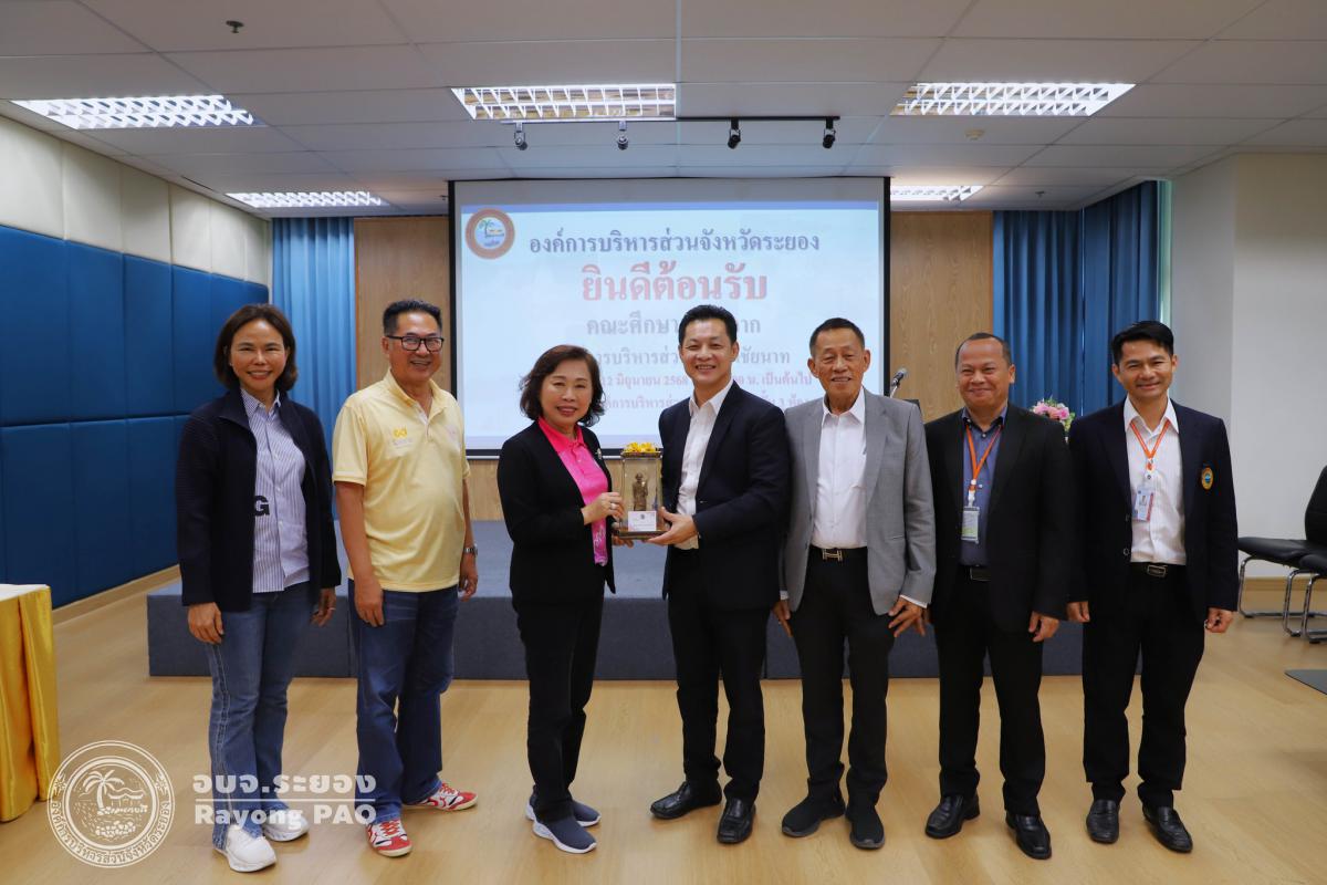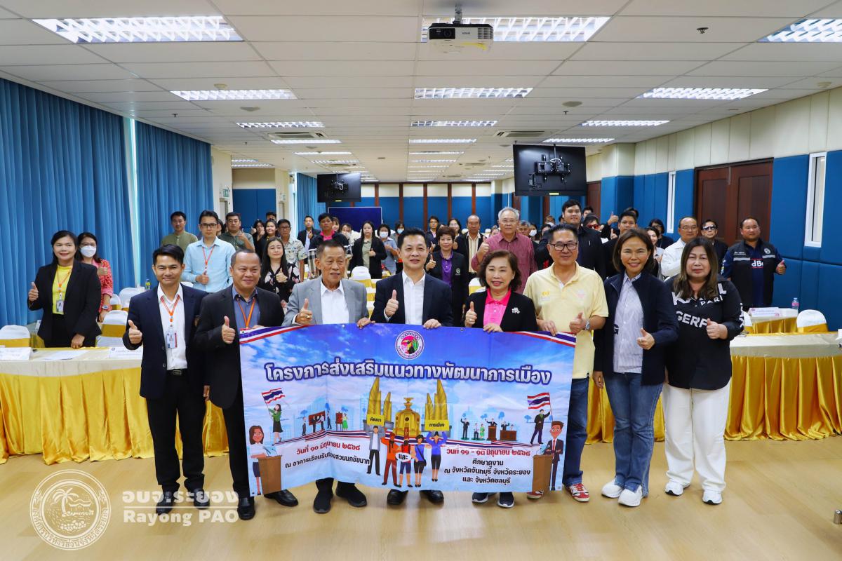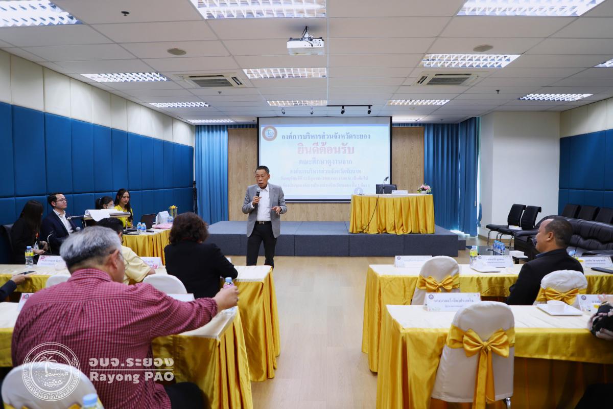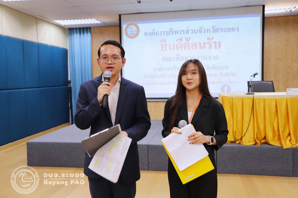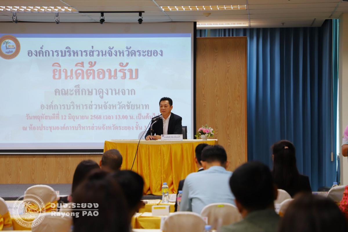วันที่ 12 มิถุนายน 2568 เวลา 13.00 น. นายกิตติ เกียรติ์มนตรี รองนายกองค์การบริหารส่วนจังหวัดระยอง (1) เป็นประธานการต้อนรับคณะศึกษาดูงานจากองค์การบริหารส่วนจังหวัดชัยนาท โครงการส่งเสริมแนวทางการพัฒนาการเมืองพร้อมด้วยนายสมบัติ มุมทอง รองปลัดองค์การบริหารส่วนจังหวัดระยอง (1), นายเตชิต วัชรเมธาพงษ์ รองปลัดองค์การบริหารส่วนจังหวัดระยอง (2), นายอรุณ วิชกิจ ผู้เชี่ยวชาญพิเศษด้านการวางแผนและวิเคราะห์นโยบาย คณะผู้บริหาร หัวหน้าส่วนราชการ และเจ้าหน้าที่ที่เกี่ยวข้องเข้าร่วมประชุมอย่างพร้อมเพรียงกัน โดยมีผู้เข้าร่วมโครงการจากองค์การบริหารส่วนจังหวัดชัยนาท นำโดยนางจิตร์ธนา ยิ่งทวีลาภา นายกองค์การบริหารส่วนจังหวัดชัยนาท และคณะผู้บริหารดูงานจากองค์การบริหารส่วนจังหวัดชัยนาทพร้อมด้วยเจ้าหน้าที่องค์การบริหารส่วนจังหวัดชัยนาท จำนวนรวมทั้งสิ้น 47 คน ณ ห้องประชุม 1 ชั้น 3 อบจ.ระยอง