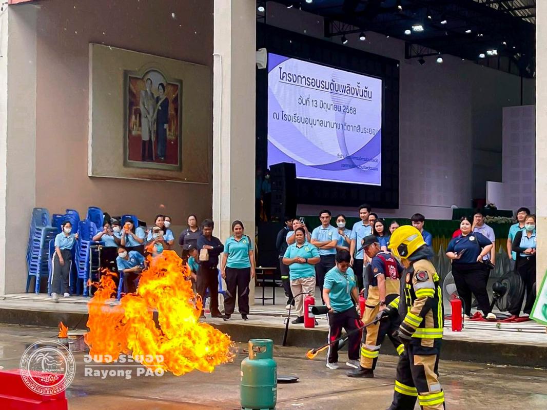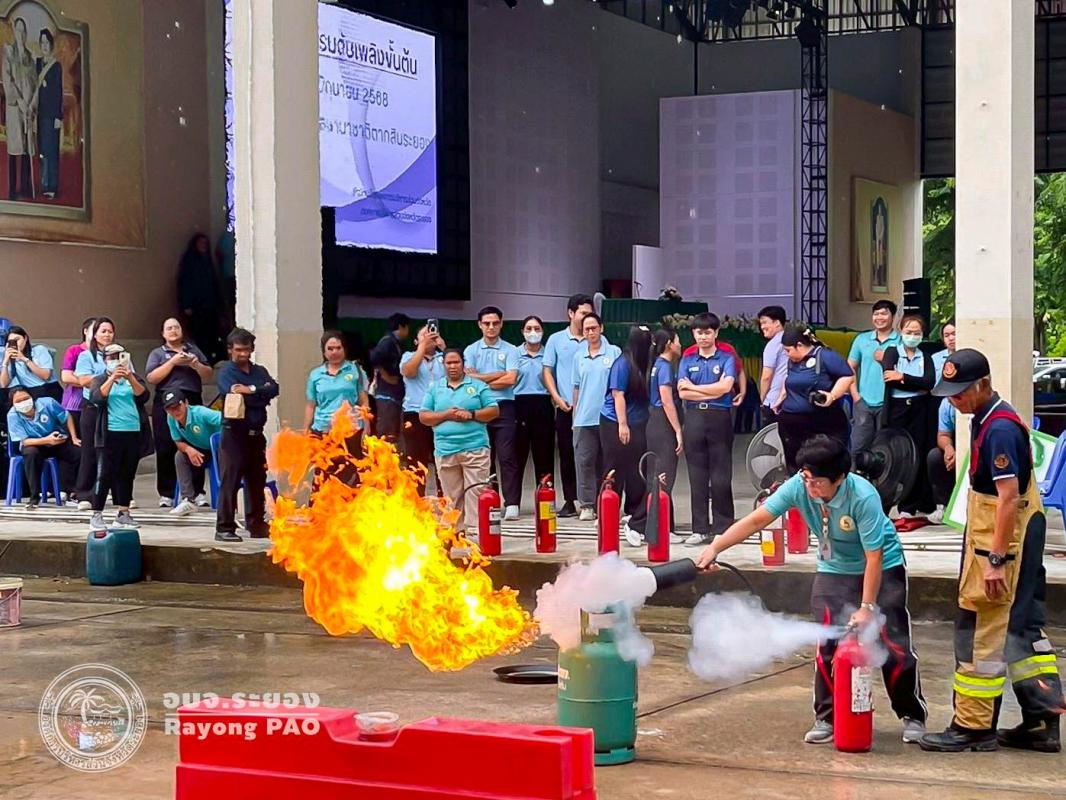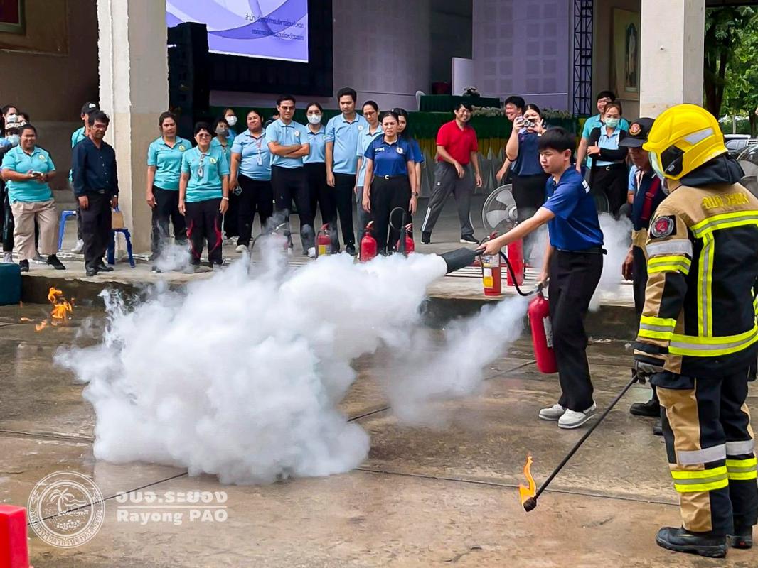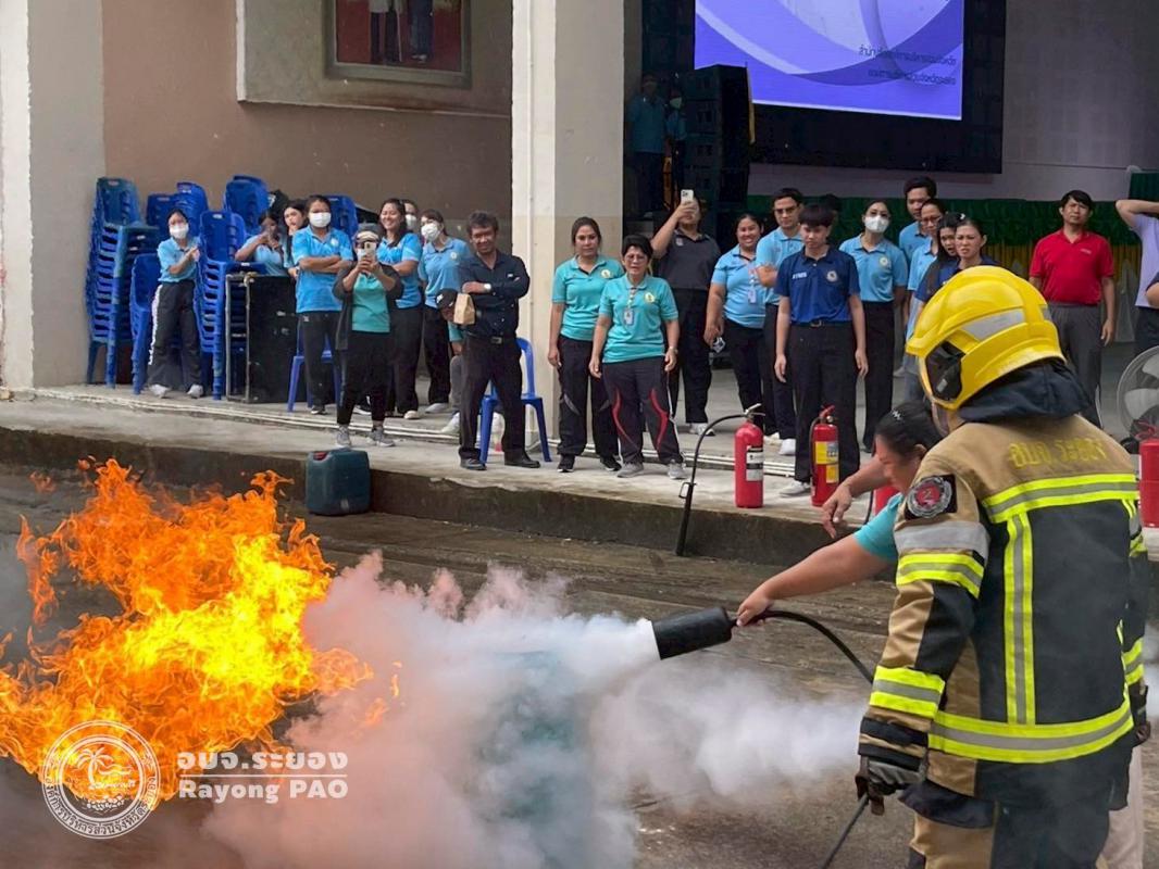 องค์การบริหารส่วนจังหวัดระยองได้จัดโครงการอบรมดับเพลิงขั้นต้นให้กับบุคลากรทางการศึกษาโรงเรียนในสังกัดองค์การบริหารส่วนจังหวัดระยอง เพื่อให้มีความรู้มีความสามารถในการระงับเหตุเบื้องต้น เตรียมความพร้อมและส่งเสริมความรู้ในด้านสาธารณภัยต่างๆ โดยเฉพาะอัคคีภัย ให้บุคลากรได้รู้จักและสามารถใช้เครื่องดับเพลิงได้อย่างถูกต้อง ปลอดภัย เพื่อลดความเสียหายเมื่อเกิดเหตุขึ้น มีผู้เข้าร่วมโครงการจำนวน 100 คน