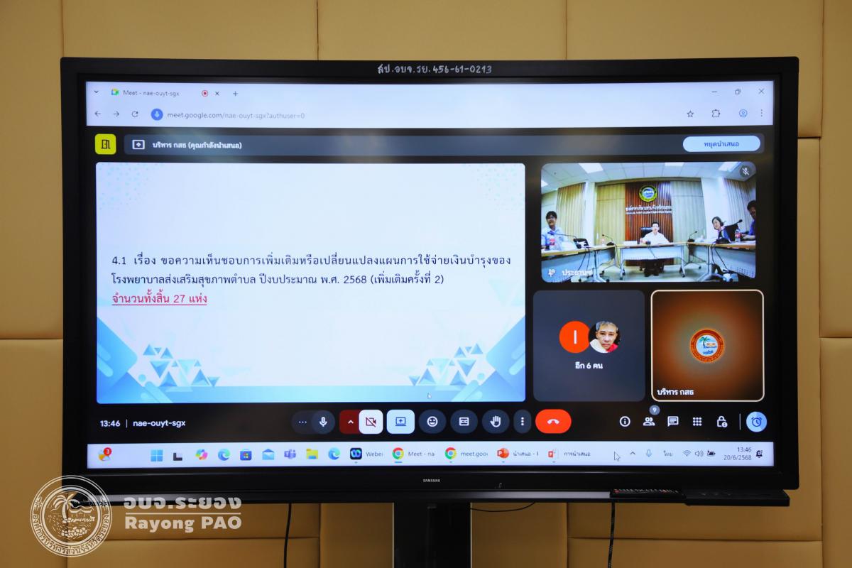 วันที่ 20 มิถุนายน 2568 เวลา 13.30 น. องค์การบริหารส่วนจังหวัดระยอง นำโดย นายกิตติ เกียรติ์มนตรี รองนายกองค์การบริหารส่วนจังหวัดระยอง (1) พร้อมด้วย นางสาวสมบัติ ชุติมานุกูล เลขานุการนายกองค์การบริหารส่วนจังหวัดระยอง, นายสุนทร เหรียญภูมิการกิจ ผู้เชี่ยวชาญด้านการแพทย์และสาธารณสุข, นายสุริยะ ศิริวัฒน์ ผู้อำนวยการกองสาธารณสุข และเจ้าหน้าที่ที่เกี่ยวข้อง เข้าร่วมการประชุมคณะกรรมการพิจารณาให้ความเห็นชอบ แผนการใช้จ่ายเงินบำรุงของโรงพยาบาลและหน่วยบริการสาธารณสุข ในสังกัดองค์การบริหารส่วนจังหวัดระยอง ปีงบประมาณ พ.ศ. 2568 (เพิ่มเติมครั้งที่ 2) เพื่อให้การปฏิบัติงานด้านการเงินการคลังของโรงพยาบาลและหน่วยบริการสาธารณสุขขององค์กรปกครองส่วนท้องถิ่นเป็นไปด้วยความเรียบร้อย ณ ห้องประชุม 2 ชั้น 3 องค์การบริหารส่วนจังหวัดระยอง