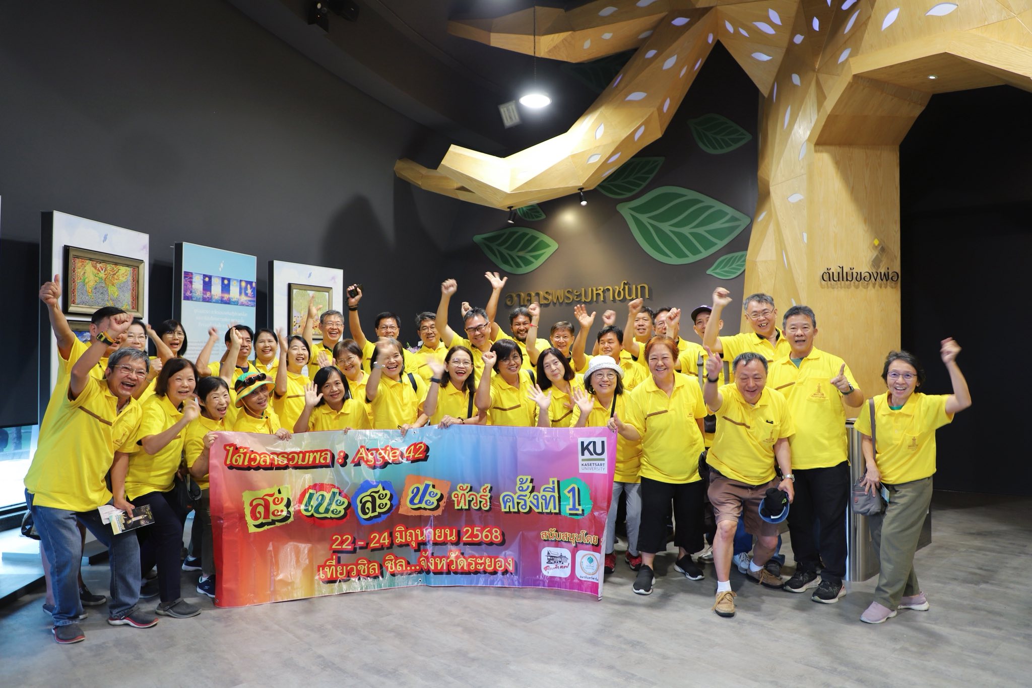 ยินดีต้อนรับ ศิษย์เก่าจากมหาวิทยาลัยเกษตรศาสตร์ คณะเกษตรศาสตร์ รุ่น ๔๒ เข้าสู่เมืองพระมหาชนก ซึ่งเป็นส่วนหนึ่งขององค์การบริหารส่วนจังหวัดระยอง ทางคณะได้เข้าชมอาคารพระมหาชนก ซึ่งด้านในได้รวบรวมจิตวิญญาณน้ำพระทัยของในหลวงรัชกาลที่ ๙ ซึ่งเป็นแห่งเดียวในประเทศไทย ต้อนรับและให้ความรู้โดยวิทยากร เพื่อให้ทุกท่านน้อมรำลึกพระมหากรุณาธิคุณรัชกาลที่ ๙ แสดงความจงรักภักดีและน้อมรำลึกในพระมหากรุณาธิคุณอันหาสุดมิได้ และชมจุดชมวิว ๓๖๐ องศา วิวบรรยากาศที่สวยงาม ณ อาคารพระมหาชนก อ่างเก็บน้ำดอกกราย อำเภอปลวกแดง จังหวัดระยอง