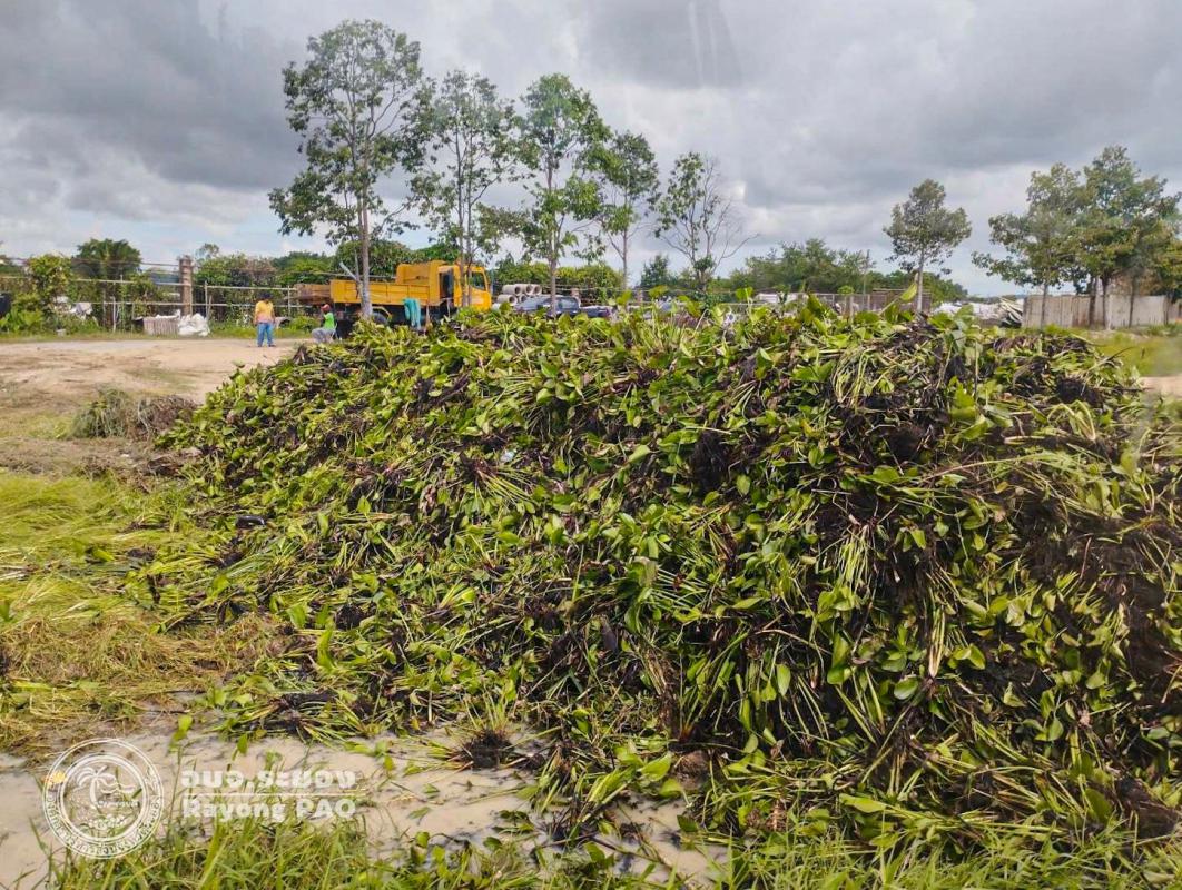 การปรับปรุงภูมิทัศน์และกำจัดวัชพืชที่ปกคลุมในแหล่งน้ำบริเวณหน้าฝายคลองยายร้า