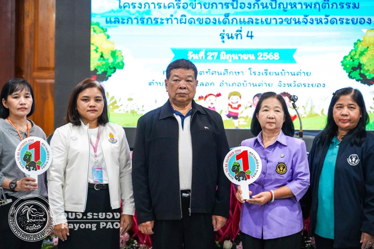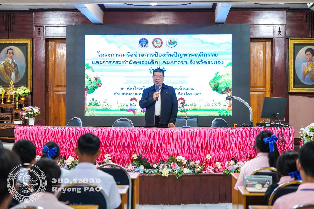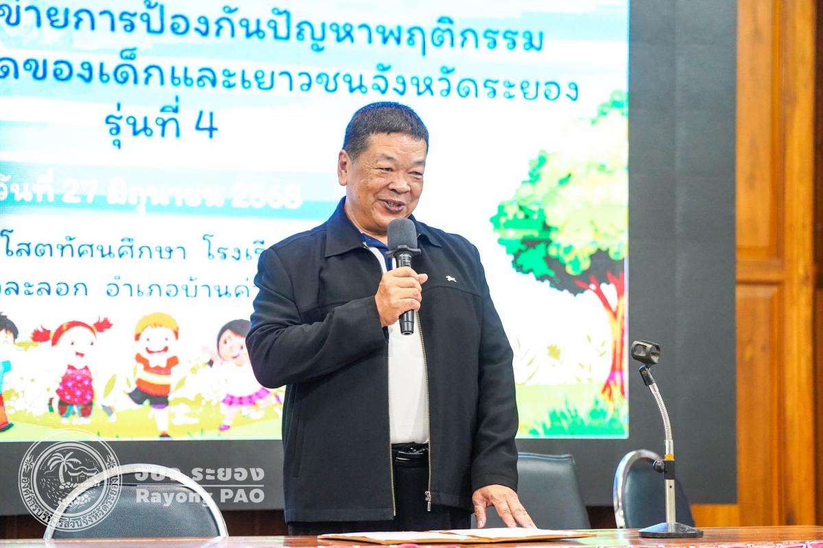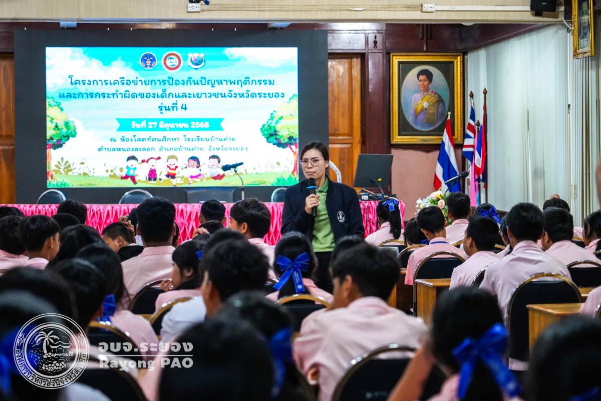 วันที่ 27 มิถุนายน 2568 เวลา 09.00 น. นายธงชัย มั่นคง ผู้เชี่ยวชาญด้านการศึกษา ศาสนา และวัฒนธรรมองค์การบริหารส่วนจังหวัดระยอง เป็นประธานในพิธีเปิดโครงการเครือข่ายการป้องกันปัญหาพฤติกรรมและการกระทำผิดของเด็กและเยาวชนจังหวัดระยอง รุ่นที่ 4 โดยมีวัตถุประสงค์เพื่อส่งเสริมและพัฒนาเด็กและเยาวชนให้มีความรู้ความเข้าใจ และปลูกฝังจิตสำนึกในเรื่องกฎหมายและกระบวนการยุติธรรม เฝ้าระวังและลดปัญหาพฤติกรรมเสี่ยงและการกระทำผิดของเด็กและเยาวชนในพื้นที่จังหวัดระยอง ซึ่งมีนักเรียนจากโรงเรียนบ้านค่าย จำนวน 100 คน เข้าร่วมโครงการฯอย่างพร้อมเพรียงกัน ณ โรงเรียนบ้านค่าย อำเภอบ้านค่าย จังหวัดระยอง
