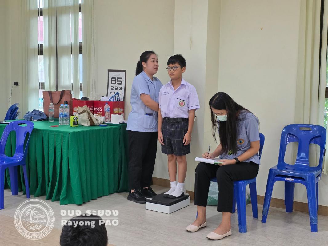 วันที่ 23 - 27 มิถุนายน 2568 เป็นสัปดาห์การตรวจสุขภาพร่างกาย และประเมินภาวะโภชนาการงานส่งเสริมสุขภาพ ฝ่ายส่งเสริมสาธารณสุข กองสาธารณสุข องค์การบริหารส่วนจังหวัดระยอง และโรงพยาบาลส่งเสริมสุขภาพตำบลบ้านหนองจอก สังกัดกองสาธารณสุขและสิ่งแวดล้อมเทศบาลตำบลเชิงเนิน ลงตรวจสุขภาพร่างกาย ประเมินภาวะโภชนาการ และตรวจวัดสายตานักเรียนโรงเรียนอนุบาลนานาชาติตากสินระยอง ตั้งแต่ระดับชั้นอนุบาล ปีที่ 1 ถึงประถมศึกษาปีที่ 6 ณ ห้องประชุม อาคารตากสิน 2 ชั้น 4 โดยมีวัตถุประสงค์เพื่อให้นักเรียนได้รับการตรวจสุขภาพร่างกาย และประเมินภาวะโภชนาการ ส่งเสริมให้นักเรียนตระหนักถึงความสำคัญของสุขภาพร่างกาย ภาวะโภชนาการ และการดูแลป้องกันการเกิดปัญหาสุขภาพตนเองต่อไป