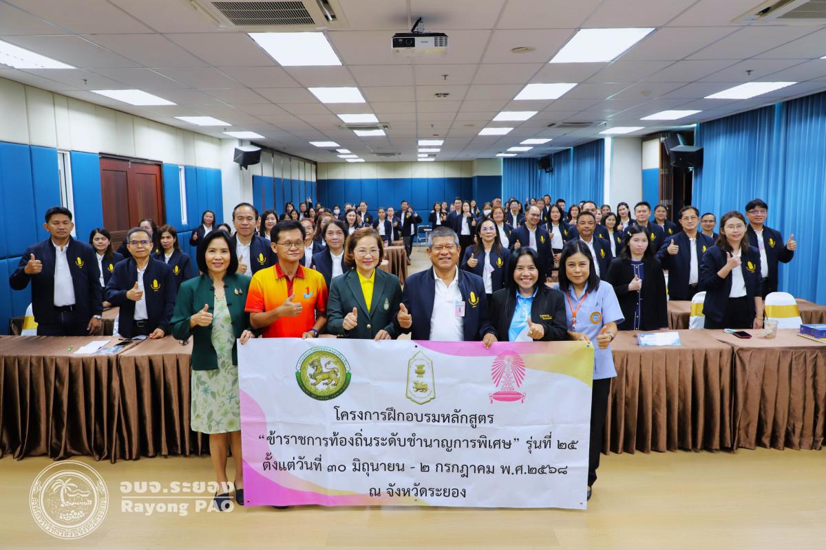 วันที่ 2 กรกฎาคม 2568 เวลา 09.30 น. นางสาวสมบัติ ชุติมานุกูล เลขานุการนายกองค์การบริหารส่วนจังหวัดระยอง เป็นประธานเปิดการอบรมหลักสูตร “ข้าราชการท้องถิ่นระดับชำนาญการพิเศษ” รุ่นที่ 25 ในหัวข้อ “การบริหารจัดการงานสาธารณสุข การถ่ายโอน รพสต.” พร้อมด้วยนายแพทย์สุนทร เหรียญภูมิการกิจ ผู้เชี่ยวชาญด้านการแพทย์และสาธารณสุข, นางเสาวณีย์ อุ่ยตระกูล ที่ปรึกษาด้านสาธารณสุข องค์การบริหารส่วนจังหวัดระยอง และเจ้าหน้าที่ที่เกี่ยวข้องเข้าร่วมโครงการอย่างพร้อมเพรียงกัน เพื่อพัฒนาบุคลากรข้าราชการท้องถิ่นระดับชำนาญการพิเศษขององค์กรปกครองส่วนท้องถิ่น ให้มีความรู้ทักษะและสมรรถนะที่เหมาะสมกับการดำรงตำแหน่งและหน้าที่ความรับผิดชอบ มีความเป็นมืออาชีพในการปฏิบัติงานมีคุณธรรมและจริยธรรม สามารถปฏิบัติงานได้ตามคุณลักษณะงานที่กำหนดได้อย่างมีประสิทธิภาพ โดยมีคณะผู้เข้าร่วมโครงการฝึกอบรมจำนวน 81 ราย ณ ห้องประชุม 3 ชั้น 3 องค์การบริหารส่วนจังหวัดระยอง