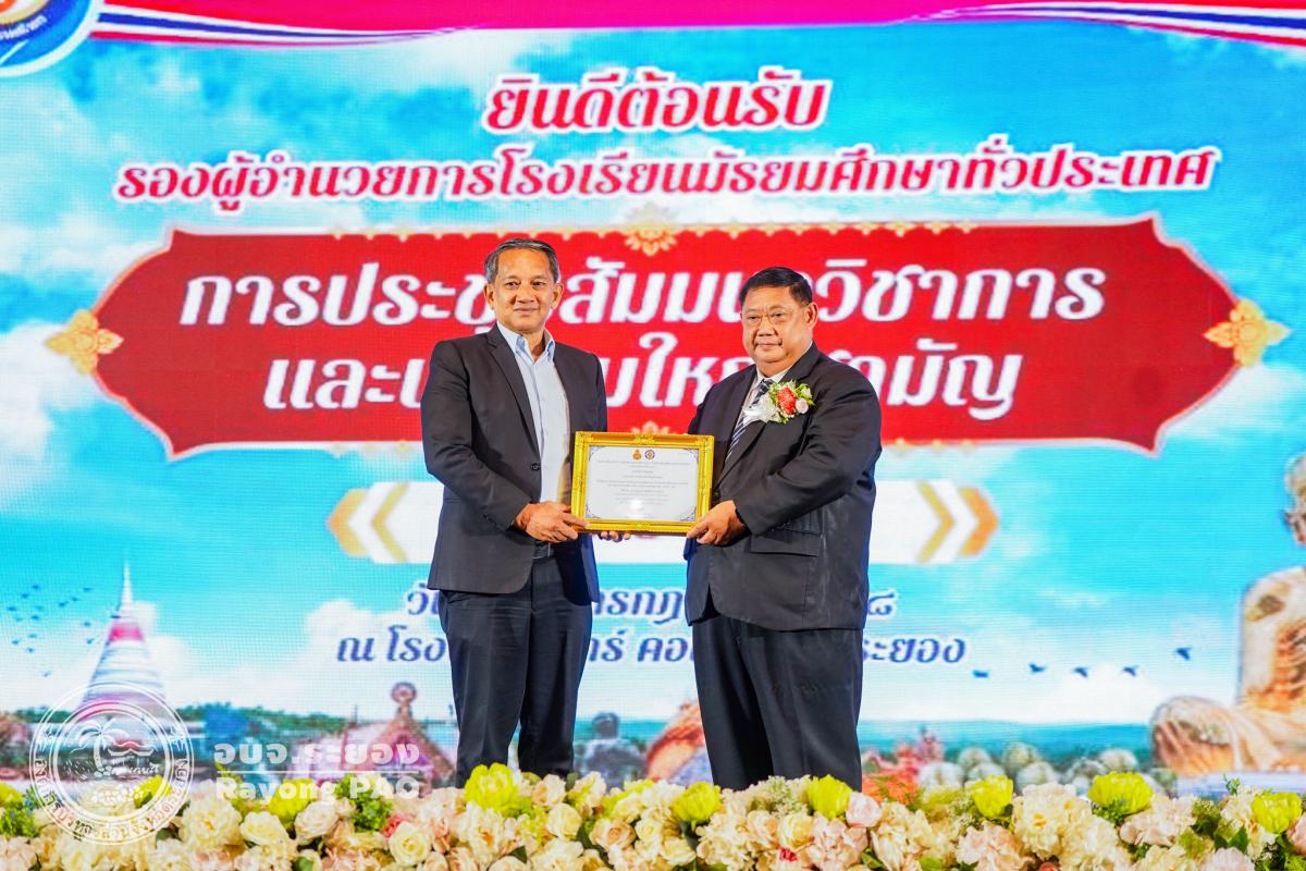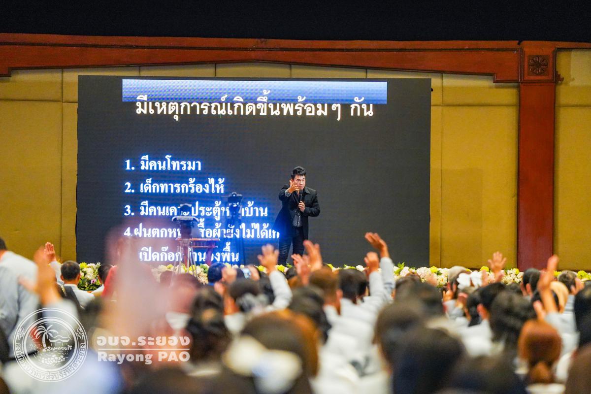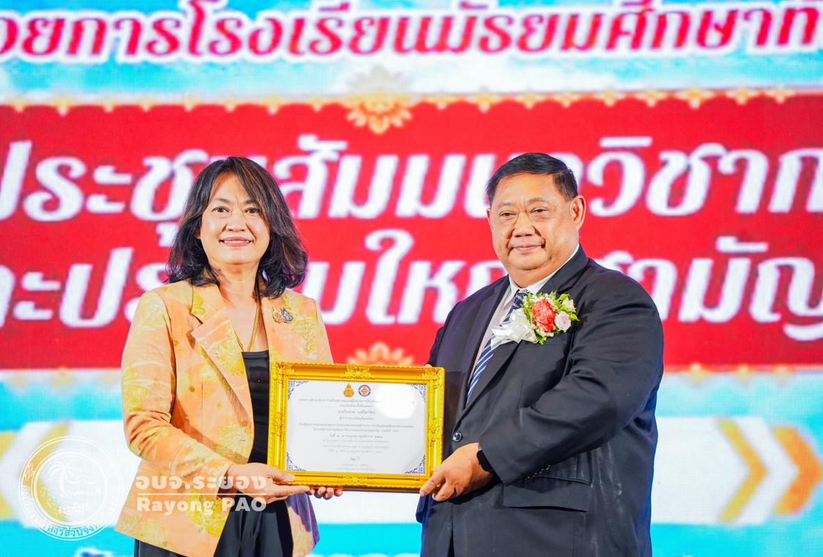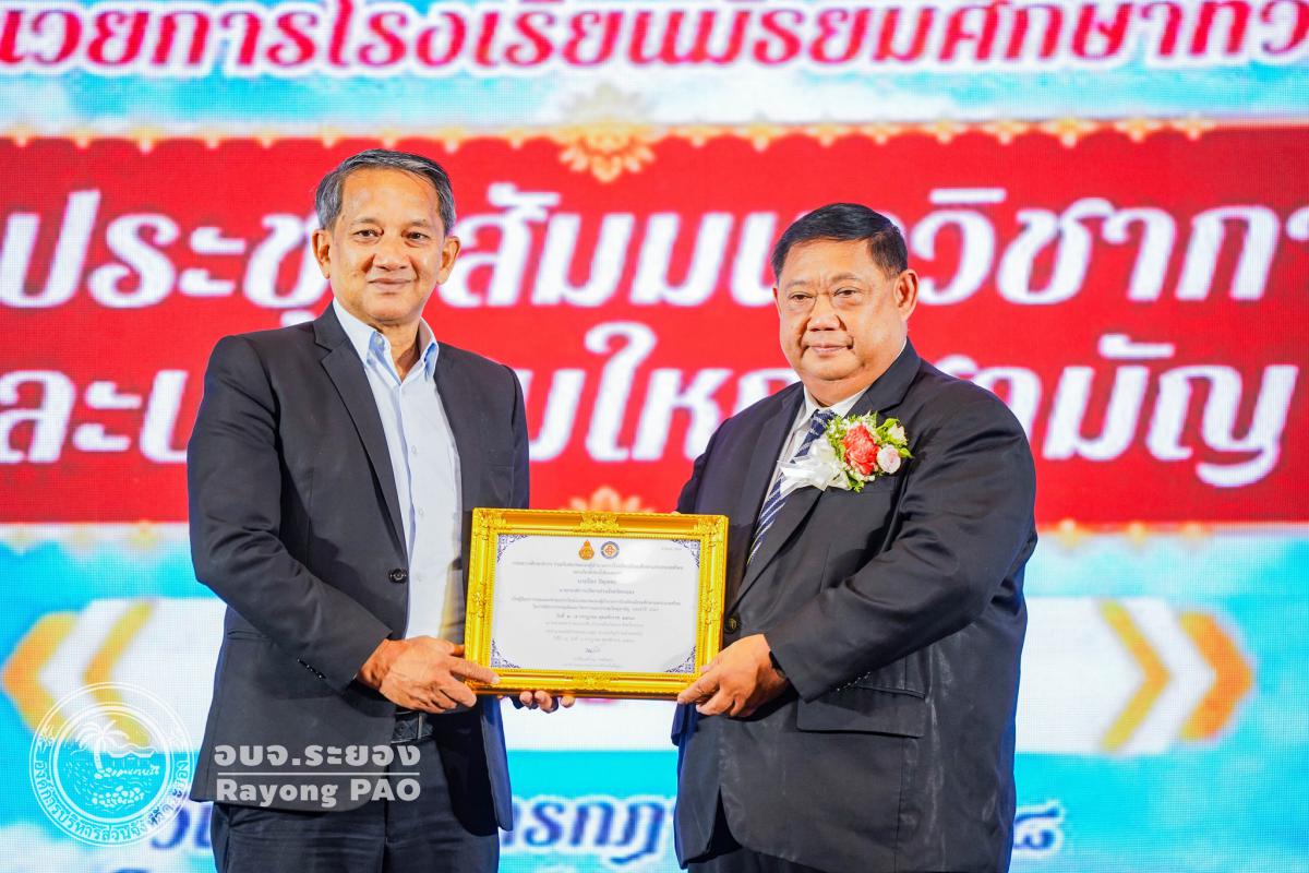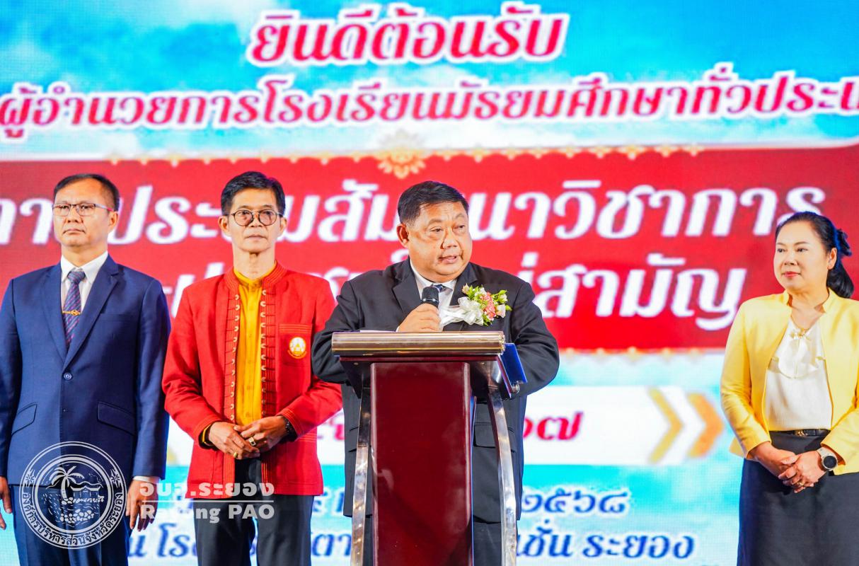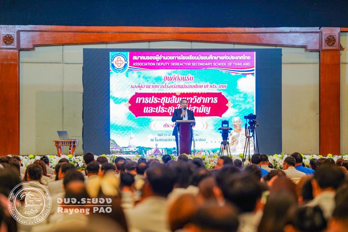 วันที่ 3 กรกฎาคม 2568 เวลา 13.30 น. นายประสานต์ พฤกษาชาติ รองนายกองค์การบริหารส่วนจังหวัดระยอง (2) เข้าร่วมพิธีเปิดโครงการประชุมสัมมนาวิชาการ การจัดการศึกษาเพื่อให้ผู้เรียน "ฉลาดรู้ ฉลาดคิด ฉลาดทำ สร้างสังคมแห่งการเรียนรู้ตลอดชีวิต" ภายใต้แนวทางการทำงาน "จับมือไว้ แล้วไปด้วยกัน" พร้อมรับมอบประกาศเกียรติคุณ ผู้อุปการคุณต่อสมาคมรองผู้อำนวยการโรงเรียนมัธยมศึกษาแห่งประเทศไทย (ส.ร.ม.ท.) โดยมี ดร. ธีร์ ภวังคนันท์ รองเลขาธิการคณะกรรมการการศึกษาขั้นพื้นฐาน เป็นประธานเปิดโครงการฯ พร้อมด้วย นายธนัฏฐ์ แสนแปง นายกสมาคมรองผู้อำนวยการโรงเรียนมัธยมศึกษาแห่งประเทศไทย, นางสาวสลารีวรรณ ทัพทวี รองผู้ว่าราชการจังหวัดระยอง ผู้บริหารสถานศึกษา และเจ้าหน้าที่ที่เกี่ยวข้องเข้าเข้าร่วมพิธีเปิดโครงการฯ โดยพร้อมเพรียงกัน ซึ่งโครงการดังกล่าวจัดขึ้นเพื่อส่งเสริมความสามัคคีระหว่างรองผู้อำนวยการมัธยมศึกษา สังกัดสำนักงานเขตพื้นที่การศึกษามัธยมศึกษา ส่งเสริมความรู้และพัฒนาความก้าวหน้าแก่สมาชิก เพื่อให้เกิดประโยชน์ในการจัดการศึกษาของชาติ และเป็นศูนย์รวมในการดำเนินงานและแก้ปัญหาร่วมกันของสมาชิกกับหน่วยงาน และองค์กรทางการศึกษา และผู้บริหารสถานศึกษาเพื่อก่อให้เกิดประโยชน์ต่อการศึกษาของชาติ ณ โรงแรมสตาร์ คอนเวนชั่น อำเภอเมืองระยอง จังหวัดระยอง