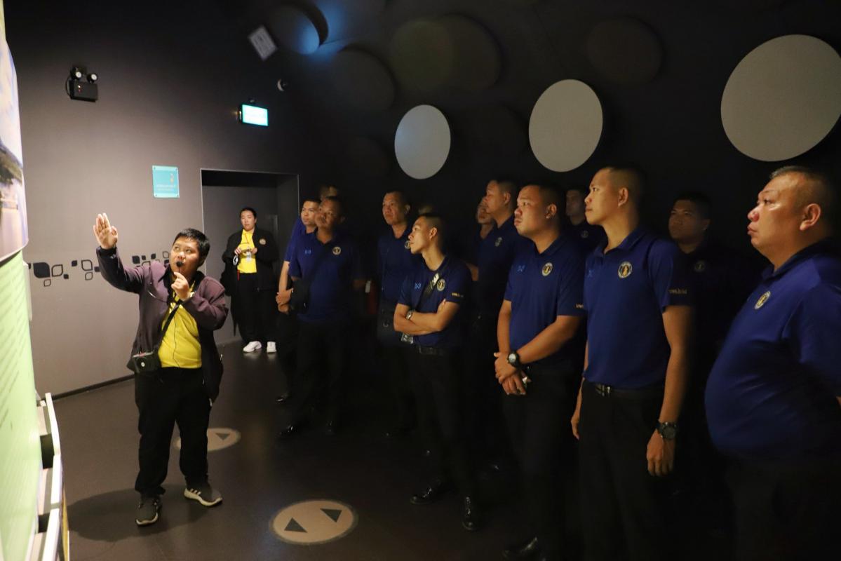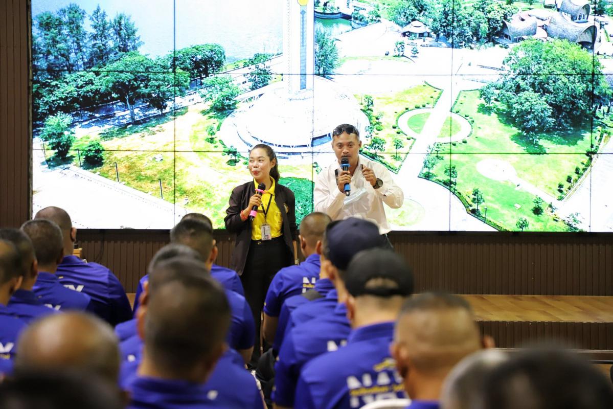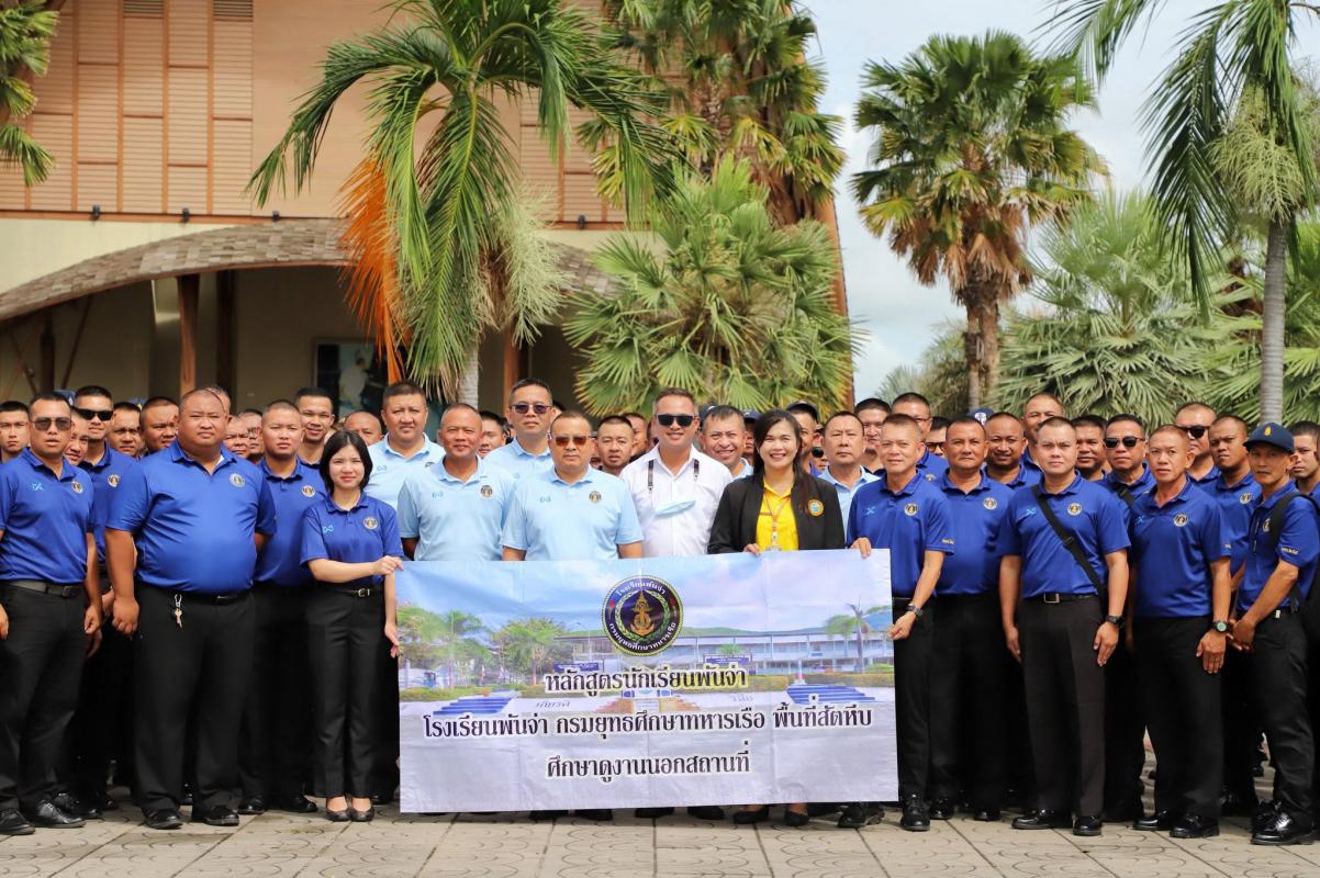ยินดีต้อนรับคณะโรงเรียนพันจ่า พื้นที่สัตหีบ กรมยุทธศึกษาทหารเรือ จังหวัดชลบุรีเข้าสู่เมืองพระมหาชนกซึ่งเป็นส่วนหนึ่งขององค์การบริหารส่วนจังหวัดระยอง คุณทหารเรือ มีความเป็นระเบียบ ยืนตรง ร่วมถ่ายรูปเป็นที่ระลึกด้านหน้าอาคารอบรมและการเรียนรู้ อาคารปูทะเลย์มหาวิชชาลัย และเข้าสู่ด้านในอาคาร ซึ่งต้อนรับโดยพิธีกร และเจ้าหน้าที่ ร่วมทำกิจกรรมสันทนาการ ด้วยความสนุกสนาน ชมวิดีโอเกี่ยวกับเมืองพระมหาชนก และร่วมร้องบทเพลงสรรเสริญพระบารมี บทเพลงซึ่งบรรเลงสรรเสริญพระบารมีของพระมหากษัตริย์แห่งราชอาณาจักรไทย ถัดมาทุกท่านจะได้นั่งรถรางชมวิวบรรยากาศ ภายในโครงการศูนย์บริการการพัฒนาปลวกแดงตามพระราชดำริจังหวัดระยอง และเข้าชมอาคารพระมหาชนก ซึ่งด้านในมีนิทรรศการที่รวบรวมจิตวิญญาณน้ำพระทัยของในหลวงรัชกาลที่ ๙ และชมจุดชมวิวในช่วงเย็น ซึ่งมีบรรยากาศที่ดี รับลมธรรมชาติ ชมวิวบรรยากาศอ่างเก็บน้ำดอกกรายในมุมสูง ซึ่งเมืองพระมหาชนก เล็งเห็นถึงความสำคัญของทหารที่ปกป้องประเทศ ให้ทหารทุกท่านได้ศึกษาดูงานเข้าชมเมืองพระมหาชนก ความสำคัญของ "กองทัพเรือ" เป็นอีกกองรบหนึ่งที่มีหน้าที่ปกป้องอธิปไตยของชนชาวไทย ตั้งแต่สมัยอดีตกาล เพื่อให้ได้แนวทางแห่งความดี สถานที่แห่งความสุข ผ่อนคลาย เพื่อให้มีขวัญและกำลังใจในการปกป้องประเทศต่อไปในอนาคต ณ อาคารพระมหาชนก อ่างเก็บน้ำดอกกราย อำเภอปลวกแดง จังหวัดระยอง