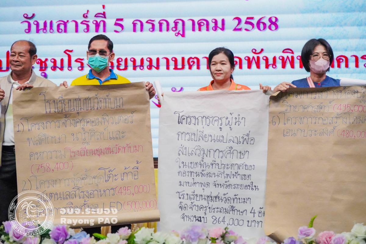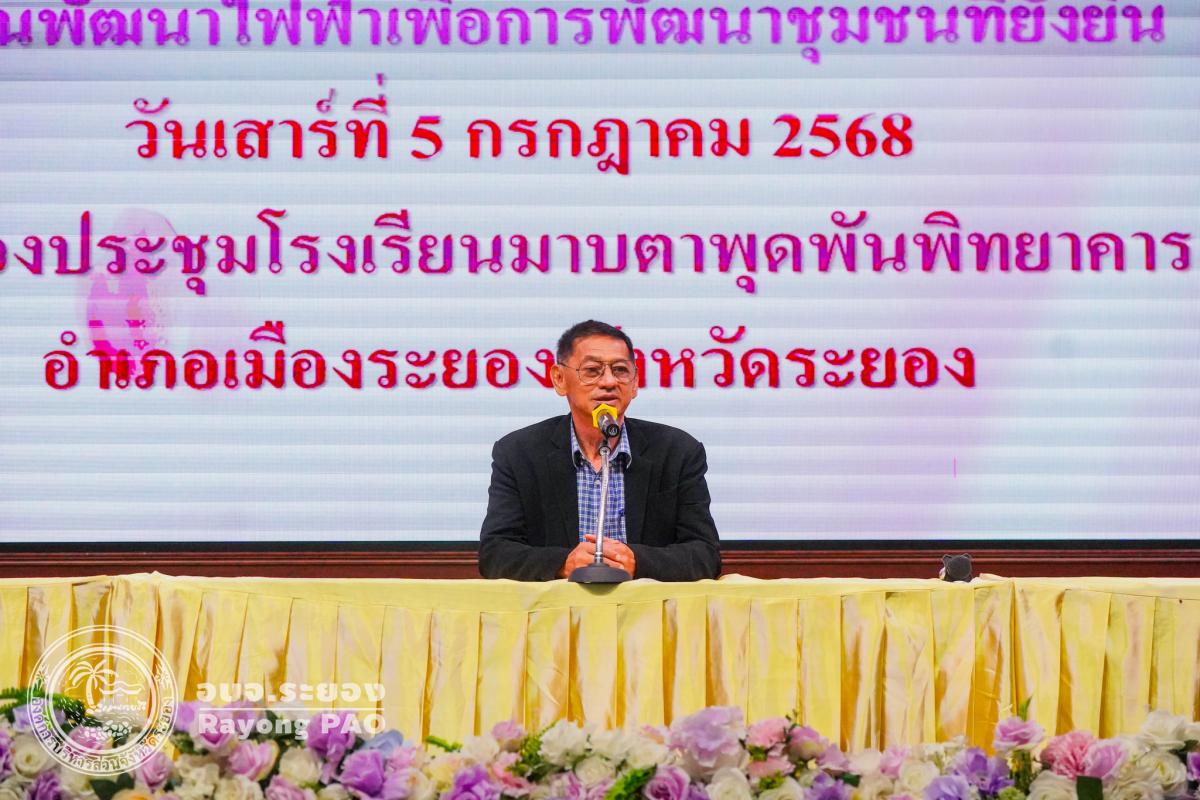 วันที่ 5 กรกฎาคม 2568 เวลา 09.00 น. นายปิยะ ปิตุเตชะ นายกองค์การบริหารส่วนจังหวัดระยอง เป็นประธานเปิดการประชุมประชาคมเพื่อสำรวจความต้องการของประชาชนในเขตพื้นที่ประกาศ ตามแผนงานประจำปีงบประมาณ พ.ศ. 2569 ของกองทุนพัฒนาไฟฟ้าเขตนิคมอุตสาหกรรมมาบตาพุด จังหวัดระยอง พร้อมด้วย นายกิตติ เกียรติ์มนตรี รองนายกองค์การบริหารส่วนจังหวัดระยอง (1) สมาชิกสภาอบจ.ระยอง ผู้ทรงคุณวุฒิ คณะกรรมการกองทุนพัฒนาไฟฟ้า (คพรฟ) คณะกรรมการกองทุนพัฒนาไฟฟ้าตำบล (คพรต) และเจ้าหน้าที่จากหน่วยงานต่างๆที่เกี่ยวข้องเข้าร่วมประชุมกันอย่างพร้อมเพรียง ณ โรงเรียนมาบตาพุดพันพิทยาคาร