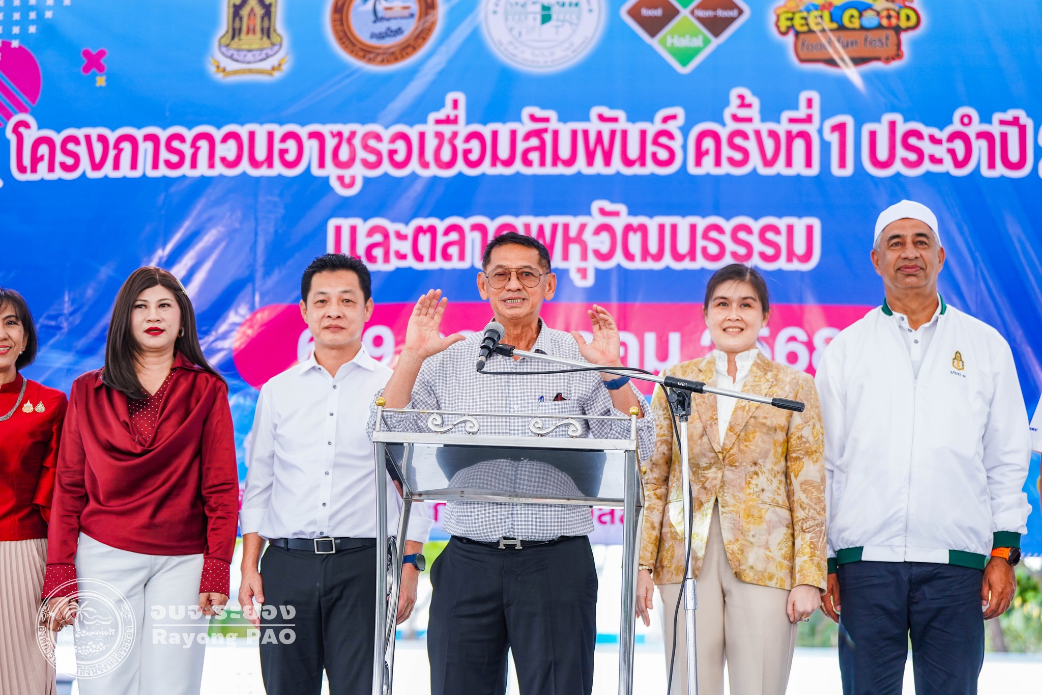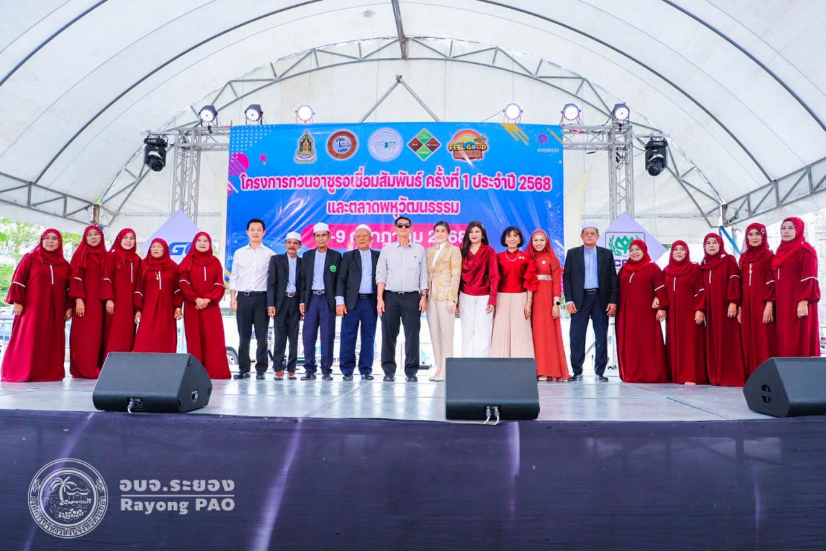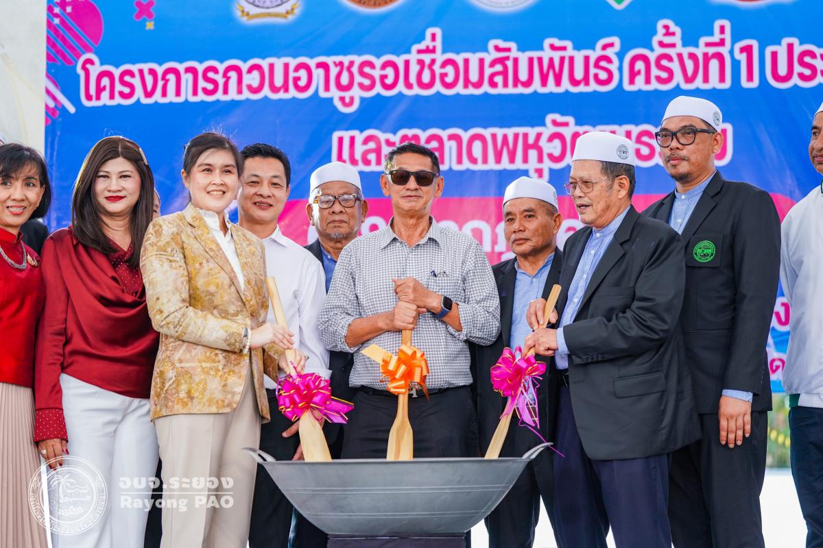 วันที่ 6 กรกฎาคม 2568 เวลา 13.30 น. นายปิยะ ปิตุเตชะ นายกองค์การบริหารส่วนจังหวัดระยอง เป็นประธานเปิดงาน “กวนอาซูรอเชื่อมความสัมพันธ์และตลาดพหุวัฒนธรรม ครั้งที่ 1 ประจำปี 2568” พร้อมด้วย นายกิตติ เกียรติ์มนตรี รองนายกองค์การบริหารส่วนจังหวัดระยอง (1) คณะกรรมการอิสลามประจำจังหวัดระยอง ผู้แทนหน่วยงานภาครัฐ ภาคเอกชน และผู้ที่เกี่ยวข้องเข้าร่วมพิธีเปิดฯโดยพร้อมเพรียงกัน ซึ่งงานดังกล่าวจัดขึ้นเพื่อสืบสานกิจกรรมและขนบธรรมเนียมประเพณี “กวนอาซูรอ” ให้คงอยู่จากรุ่นสู่รุ่น และส่งเสริมความสัมพันธ์อันดีระหว่างประชาชนในพื้นที่จังหวัดระยองโดยไม่แบ่งแยกเชื้อชาติ ศาสนา หรือวัฒนธรรม โดยงานจัดขึ้นระหว่างวันที่ 6-9 กรกฎาคม 2568 ณ สนามกีฬากลางจังหวัดระยอง อำเภอเมืองระยอง จังหวัดระยอง