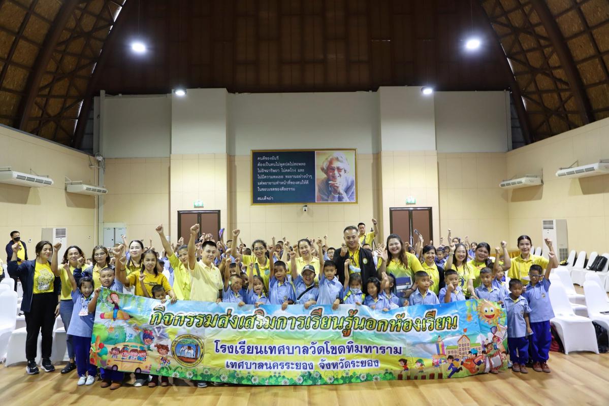 ยินดีต้อนรับคณะครู ผู้ปกครอง และนักเรียนชั้นประถมศึกษาปีที่ ๒ จากโรงเรียนเทศบาลวัดโขดทิมทาราม จังหวัดระยอง กับโครงการส่งเสริมการเรียนรู้นอกห้องเรียน เข้าสู่เมืองพระมหาชนก ซึ่งเป็นส่วนหนึ่งขององค์การบริหารส่วนจังหวัดระยอง อีกหนึ่งวันสดใส กับวัยสดใส เด็กน้อยที่พร้อมเรียนรู้ แนวทางแห่งความดีมีคุณธรรม และจริยธรรม เริ่มต้นจะเข้าสู่อาคารอบรมและการเรียนรู้ อาคารปูทะเลย์มหาวิชชาลัย ต้อนรับโดยพิธีกร และดูแลโดยเจ้าหน้าที่ ด้วยใบหน้าที่เปี่ยมด้วยรอยยิ้ม ความสุขจากการได้ทำหน้าที่อย่างเต็มที่ เด็กๆร่วมทำกิจกรรมสันทนาการ ที่เหมาะสมกับวัย กิจกรรมถัดมาการกล่าวปฏิญาณ จะปกป้องสถาบันชาติ ศาสนา พระมหากษัตริย์ เพื่อความจงรักภักดี และที่พลาดไม่ได้นั่นคือการนั่งรถราง ได้แวะสะพานจัมปานคร สะพานแขวนสีเหลืองสดใส แวะฟาร์มแกะ@ดอกกราย ได้ความรู้โดยวิทยากร ให้อาหารแกะ แพะ เต่า ปลา สถานที่สุดท้ายนั่นคืออาคารพระมหาชนก ที่รวบรวมจิตวิญญาณน้ำพระทัยของในหลวงรัชกาลที่ ๙ เด็กน้อยได้ชมจุดชมวิวสวยงาม มีความตื่นเต้นเป็นอย่างมาก ร่วมรับประทานอาหารมื้อกลางวัน กิจกรรมทำแบบฝึกหัดความรู้ที่ได้ในวันนี้ ซึ่งกิจกรรมทั้งหมดได้ทั้งความรู้ และน้อมรำลึกถึงพระมหากรุณาธิคุณ อันหาที่สุดมิได้ ของในหลวงรัชกาลที่ ๙ ไว้มีโอกาสกลับมาสร้างความประทับใจที่เมืองพระมหาชนกอีกครั้ง ณ อาคารพระมหาชนก อ่างเก็บน้ำดอกกราย อำเภอปลวกแดง จังหวัดระยอง