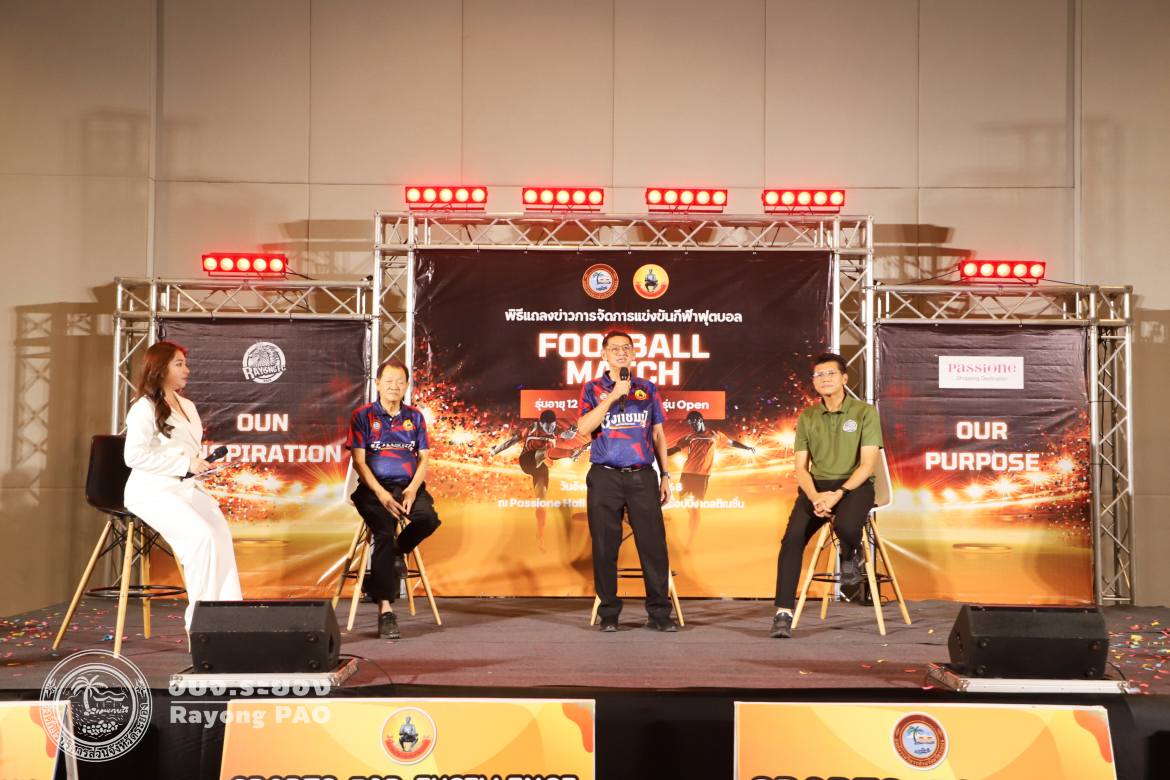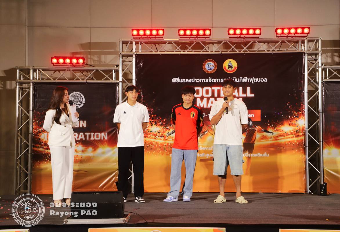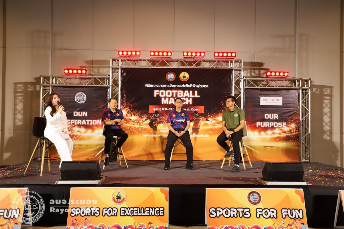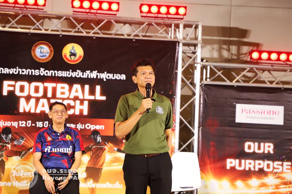 วันที่ 5 สิงหาคม 2568 เวลา 13.00 น. องค์การบริหารส่วนจังหวัดระยอง ร่วมกับสมาคมกีฬาแห่งจังหวัดระยอง กำหนดจัดการแข่งขันกีฬาฟุตบอลเยาวชน ในรุ่นอายุ 12 ปี, 15 ปี, 17 ปี และ รุ่น Open โดยมีวัตถุประสงค์เพื่อส่งเสริม สนับสนุนให้เยาวชน และประชาชนจังหวัดระยองได้พัฒนาทักษะการแข่งขันกีฬาฟุตบอลตลอดจนมีส่วนร่วมในการเข้าร่วมการแข่งขันกีฬาฟุตบอลในระดับจังหวัด โดยมีนายปิยะ ปิตุเตชะ นายกองค์การบริหารส่วนจังหวัดระยอง เป็นประธานในพิธีฯ พร้อมด้วยคณะผู้บริหาร สมาชิกสภาองค์การบริหารส่วนจังหวัดระยอง และเจ้าหน้าที่ที่เกี่ยวข้อง เข้าร่วมพิธีแถลงข่าวดังกล่าวอย่างพร้อมเพรียงกัน ณ แพชชั่นฮอลล์ ชั้น 3 ห้างแพชชั่น ช็อปปิ้ง เดสติเนชั่น ระยอง