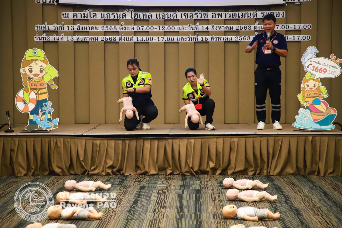 วันที่ 14 สิงหาคม 2568 เวลา 09.00 น. ศูนย์การแพทย์ฉุกเฉิน 1669 อบจ.ระยอง จัด "โครงการอบรมหลักสูตรครูผู้ช่วยครูผู้สอนการปฐมพยาบาลฉุกเฉินและการกู้ชีพขั้นพื้นฐาน" รุ่นที่ 1 ณ โรงแรมคามิโอ แกรนด์ โฮเทล โดยแบ่งการอบรมออกเป็น 2 รุ่นๆ ละ 60 คน รวม 120 คน ซึ่งผู้เข้ารับการอบรมเป็นครูผู้สอนประจำโรงเรียนในสังกัด อบจ.ระยอง โดยมุ่งหวังให้ครูเหล่านี้นำความรู้ที่ได้รับ นำกลับไปช่วยเหลือการปฐมพยาบาลฉุกเฉินเบื้องต้น หากเกิดเหตุฉุกเฉินในโรงเรียน