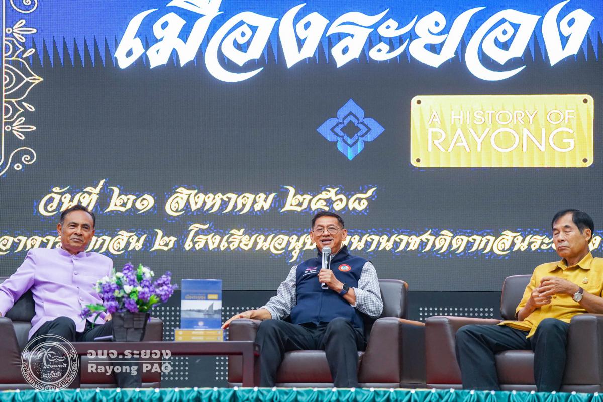 วันที่ 21 สิงหาคม 2568 เวลา 13.30 น. นายปิยะ ปิตุเตชะ นายกองค์การบริหารส่วนจังหวัดระยอง พร้อมด้วย นายประสานต์ พฤกษาชาติ รองนายกองค์การบริหารส่วนจังหวัดระยอง (2), นายทิม บุญรอด ประธานสภาวัฒนธรรมจังหวัดระยอง, นายเฉลียว ราชบุรี รองประธานสภาวัฒนธรรมจังหวัดระยอง สมาชิกสภาองค์การบริหารส่วนจังหวัดระยอง คณะผู้บริหารสถานศึกษา หน่วยงาน องค์กร และผู้ที่เกี่ยวข้องเข้าร่วมงานแถลงข่าวหนังสือย้อนรอยประวัติศาสตร์เมืองระยอง A HISTORY OF RAYONG โดยพร้อมเพรียงกัน ณ ห้องประชุม ชั้น 4 อาคารตากสิน 2 โรงเรียนอนุบาลนานาชาติตากสินระยอง
