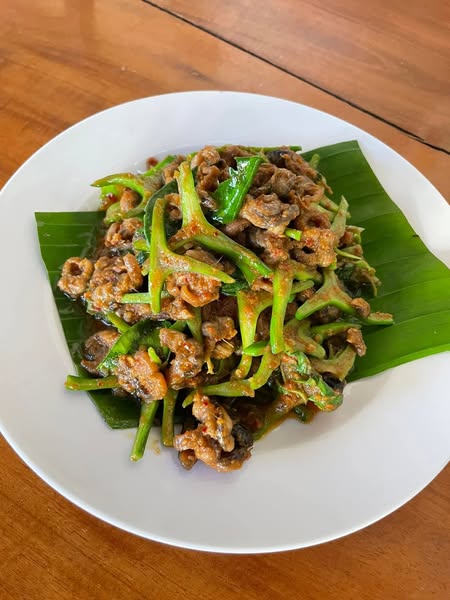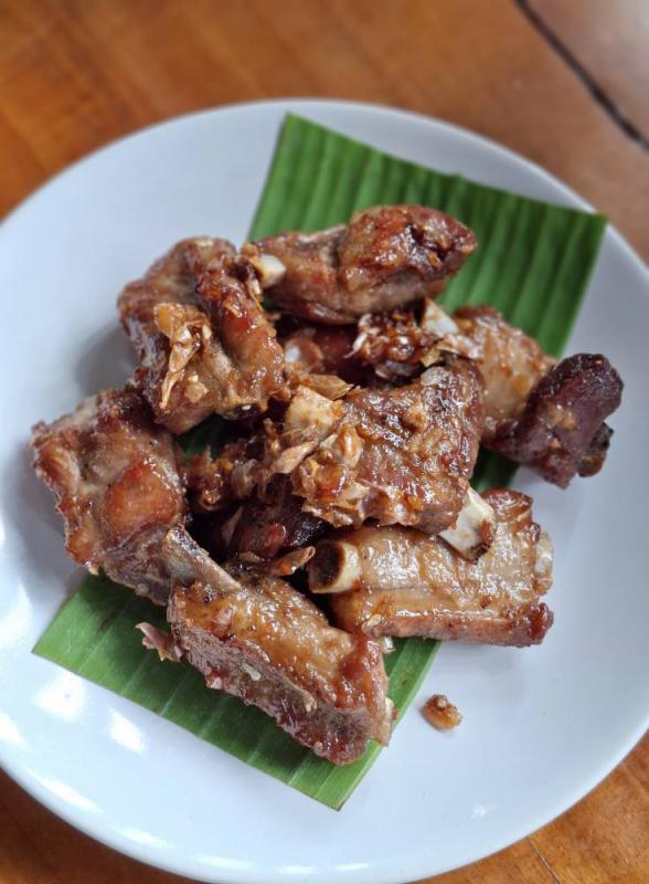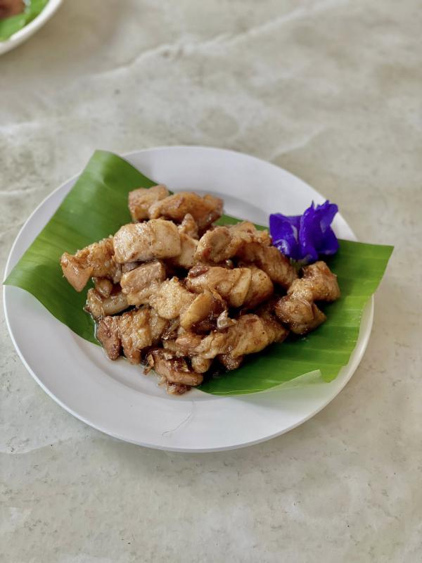 หมูคั่วบ้านคุณตา หมูชิ้นหนา คั่วเค็มๆ กระเทียมพริกไทย