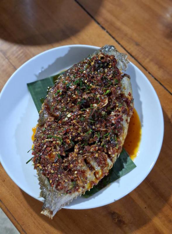 มีร่มไม้และลมโชยเย็นสบายเลยค่ะ ร้านนี้เป็นเมนูบ้านๆ รสชาติระยองอย่างแท้จริง
