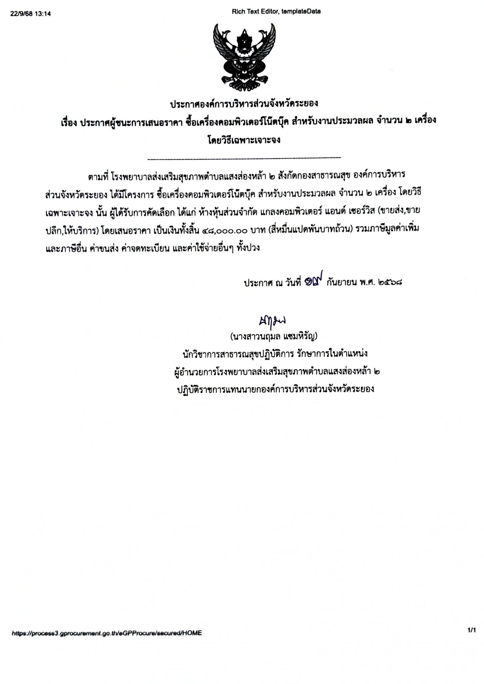 📌ประกาศผู้ชนะการเสนอราีคา จ้างเหมาจัดทำทำเนียบองค์การบริหารส่วนจัหวัดระยอง