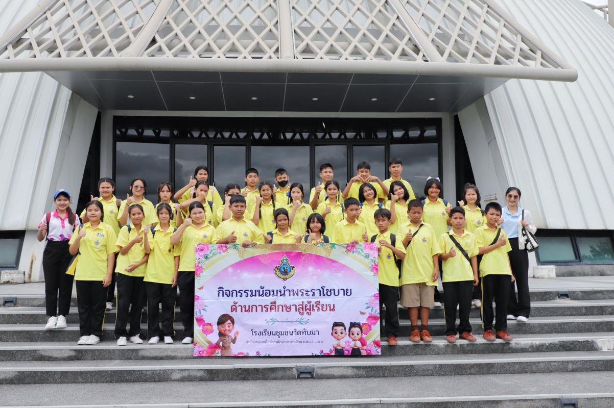 วันศุกร์ที่ ๒๖ กันยายน พ.ศ. ๒๕๖๘ เวลา ๐๙.๐๐ น. ยินดีต้อนรับคณะครู และนักเรียน ชั้นมัธยมศึกษาปีที่ ๑ โรงเรียนชุมชนวัดทับมา จังหวัดระยอง เข้าสู่เมืองพระมหาชนก ซึ่งเป็นส่วนหนึ่งขององค์การบริหารส่วนจังหวัดระยอง ต้อนรับโดยข้าราชการ เจ้าหน้าที่ที่เกี่ยวข้อง เข้าสู่สถานที่แรก นั่นคืออาคารอบรมและการเรียนรู้ อาคารปูทะเลย์มหาวิชชาลัย ต้อนรับโดยพิธีกร ให้เด็กนักเรียนร่วมทำกิจกรรมสันทนาการ สร้างสมาธิ ความสามัคคี และได้ความสนุกสนาน ควบคู่กับการทำกิจกรรมแห่งความดี การกล่าวปฏิญาณ จะปกป้องสถาบันชาติ ศาสนา พระมหากษัตริย์ เพื่อความจงรักภักดี และร่วมใจกันร้องบทเพลงสรรเสริญพระบารมี ถัดมานั่งรถรางชมวิวบรรยากาศ แวะสะพานจัมปานคร แวะฟาร์มแกะ@ดอกกราย เพื่อให้เด็กนักเรียน มีจิตใจที่อ่อนโยนเมตตาต่อสัตว์ ถัดมานั่งรถรางชมวิวบรรยากาศ สันอ่างเก็บน้ำดอกกราย ตามรอยในหลวงรัชกาลที่ ๙ บันไดแห่งความทรงจำ และที่พลาดไม่ได้การเข้าชมอาคารพระมหาชนก ที่มีนิทรรศการรวบรวมจิตวิญญาณน้ำพระทัยของในหลวงรัชกาลที่ ๙ และชมจุดชมวิวที่สวยงาม ประทับใจ ซึ่งวันนี้เด็กนักเรียนที่มาทัศนศึกษาได้ทั้งความรู้ และแนวทางคุณธรรม จริยธรรม เพื่อให้ในอนาคตมีความสุขที่ยั่งยืน ณ อาคารพระมหาชนก อ่างเก็บน้ำดอกกราย อำเภอปลวกแดง จังหวัดระยอง