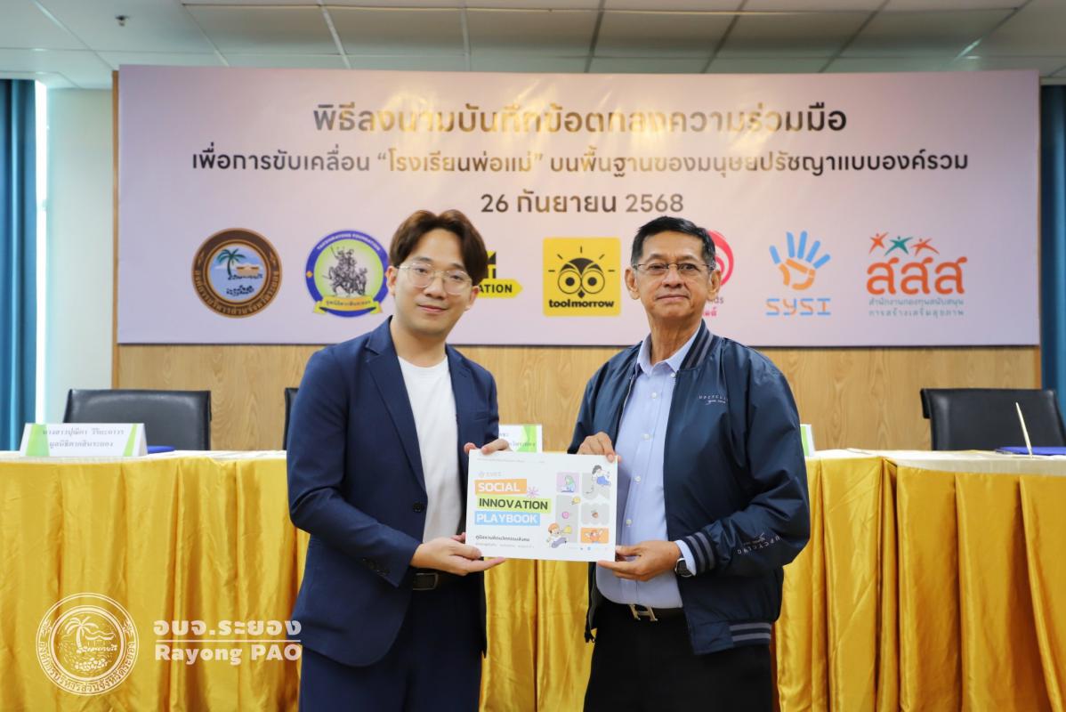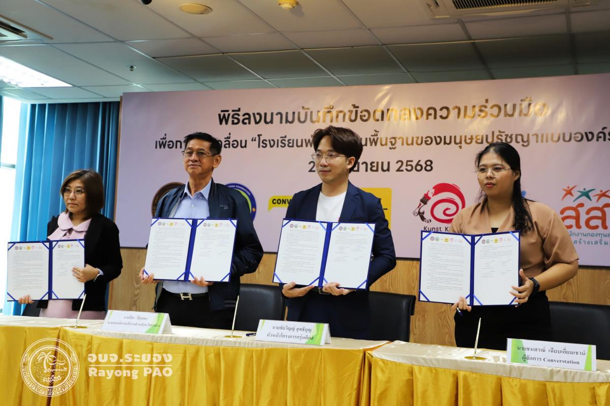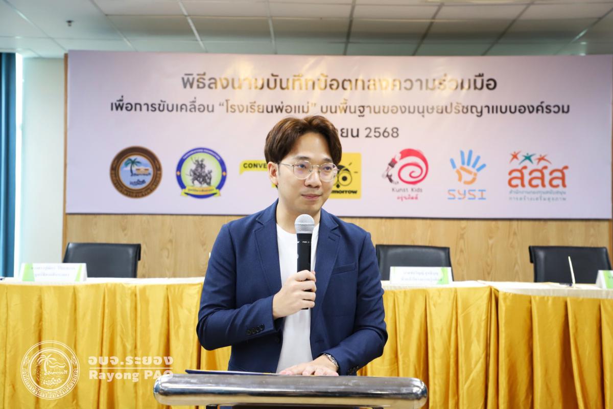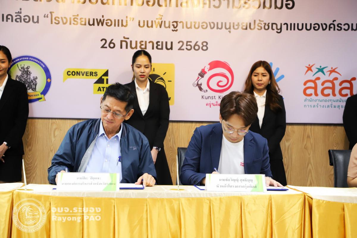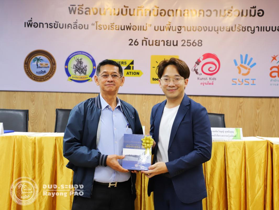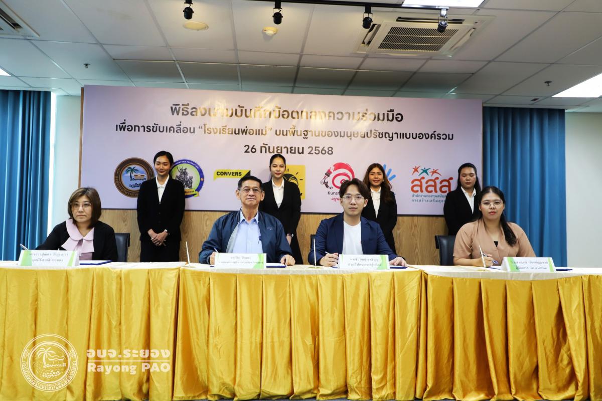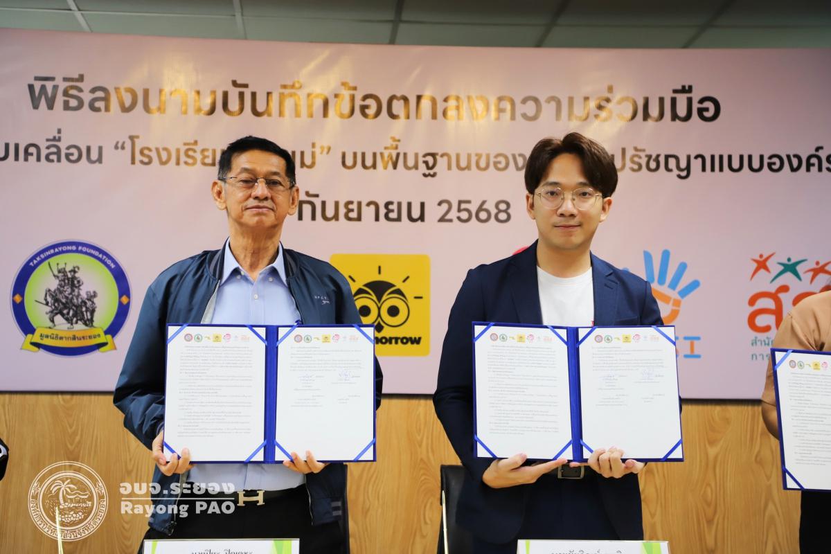 วันที่ 26 กันยายน 2568 เวลา 13.00 น. นายปิยะ ปิตุเตชะ นายกองค์การบริหารส่วนจังหวัดระยอง พร้อมด้วย คณะผู้บริหาร หัวหน้าส่วนราชการ และผู้ที่เกี่ยวข้องเข้าร่วมพิธีลงนามบันทึกข้อตกลงความเข้าใจ (MOU) เรื่อง โรงเรียนพ่อแม่ บนพื้นฐานของมนุษยปรัชญาแบบองค์รวม ระหว่างครุ่นคิดส์กับองค์การบริหารส่วนจังหวัดระยอง