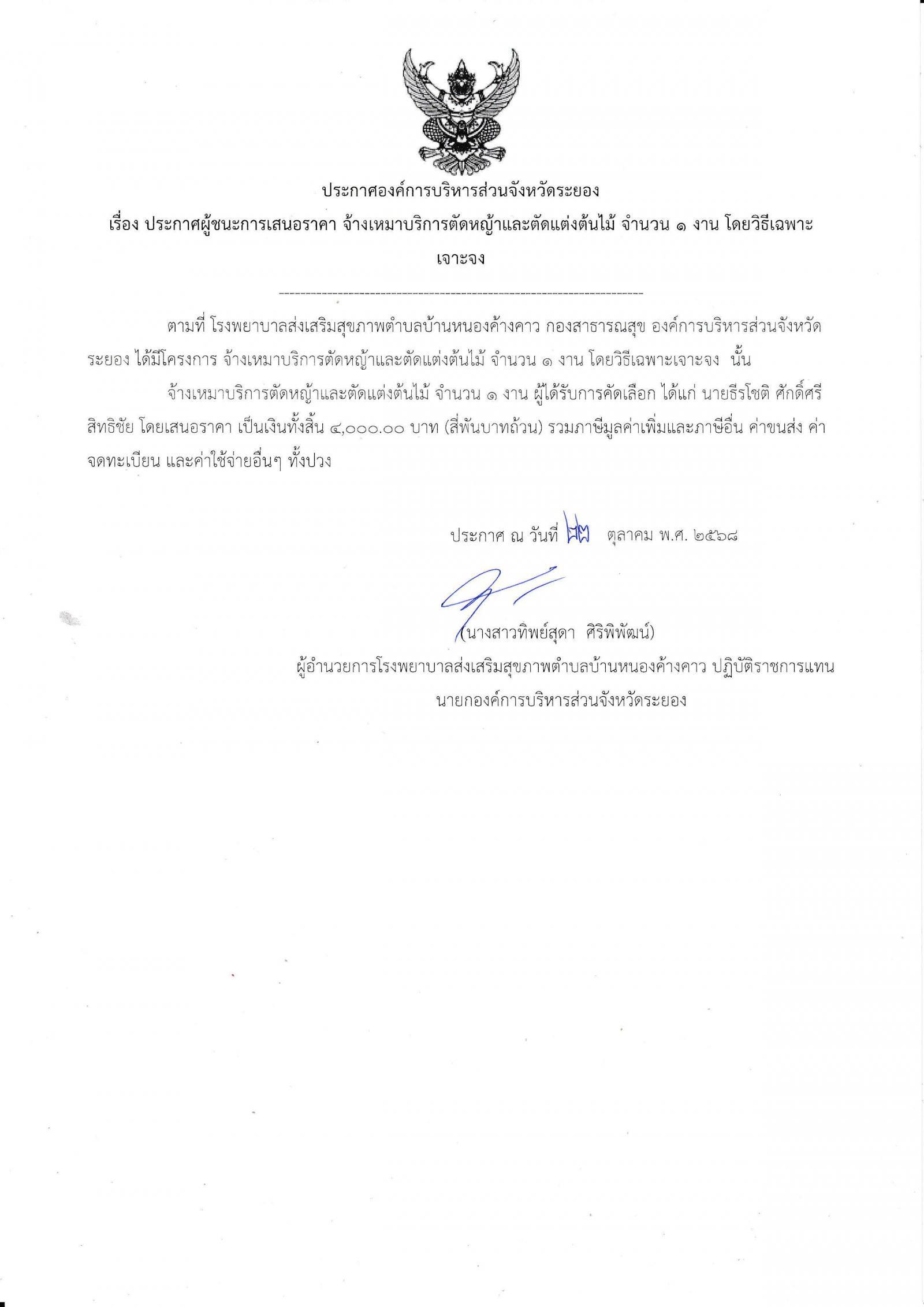 📌ประกาศผู้ชนะการเสนอราีคา จ้างเหมาจัดทำทำเนียบองค์การบริหารส่วนจัหวัดระยอง