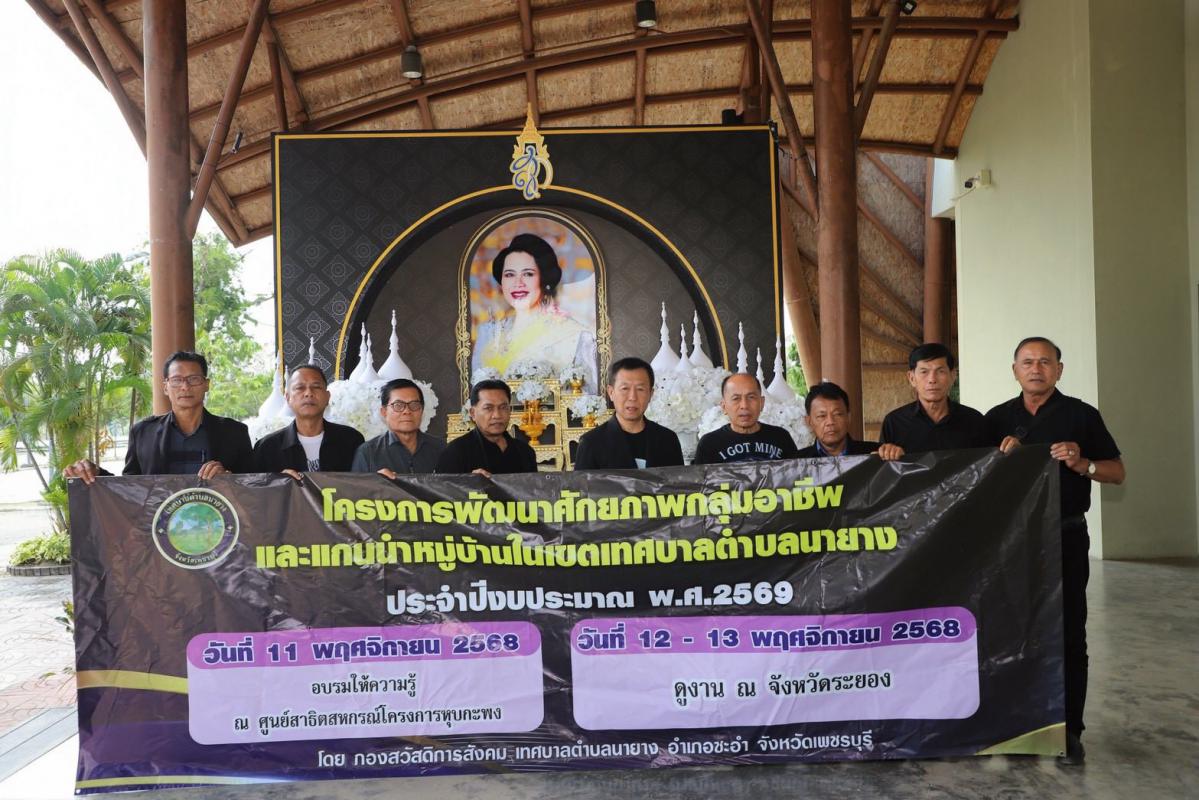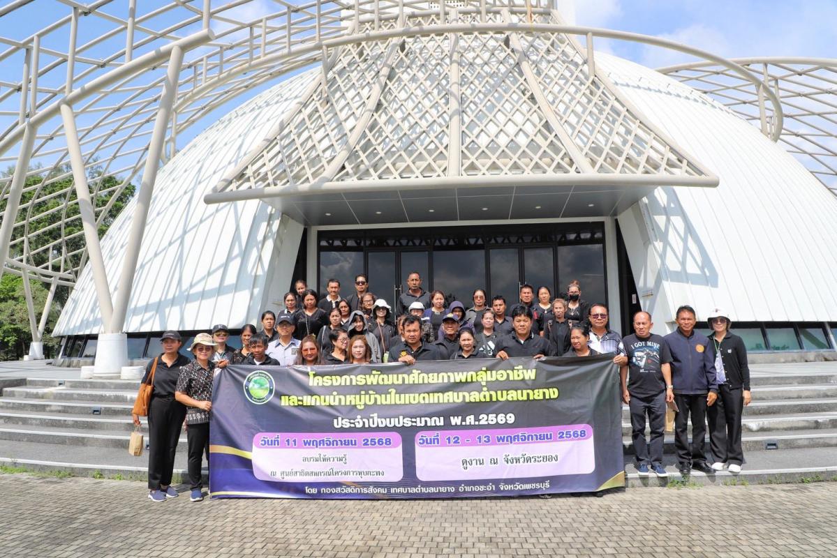 วันพฤหัสบดีที่ ๑๓ พฤศจิกายน พ.ศ. ๒๕๖๘ ยินดีต้อนรับคณะเทศบาลตำบลนายาง จังหวัดเพชรบุรี เข้าสู่เมืองพระมหาชนก ซึ่งเป็นส่วนหนึ่งขององค์การบริหารส่วนจังหวัดระยอง ต้อนรับโดยข้าราชการ เจ้าหน้าที่ ที่เกี่ยวข้อง เข้าสู่สถานที่แรก นั่นคืออาคารอบรมและการเรียนรู้ อาคารปูทะเลย์มหาวิชชาลัย ต้อนรับโดยพิธีกร ร่วมทำกิจกรรมสันทนาการ กิจกรรมแห่งความดี กิจกรรมกล่าวปฏิญาณ จะปกป้องสถาบันชาติศาสนา พระมหากษัตริย์ เพื่อความจงรักภักดี และร่วมใจกันร้องบทเพลงสรรเสริญพระบารมี ถัดมานั่งรถรางชมวิวบรรยากาศ แวะบันไดแห่งความทรงจำที่ครั้งหนึ่งในหลวงรัชกาลที่ ๙ เสด็จเพื่อก่อเกิดโครงการศูนย์บริการการพัฒนาปลวกแดงตามพระราชดำริ จังหวัดระยอง และเข้าชมอาคารพระมหาชนก ที่มีนิทรรศการรวบรวมจิตวิญญาณน้ำพระทัยของในหลวงรัชกาลที่ ๙ และชมจุดชมวิวที่สวยงาม ช่วงกลางวันรับประทานอาหาร ณ อาคารมิถิลา