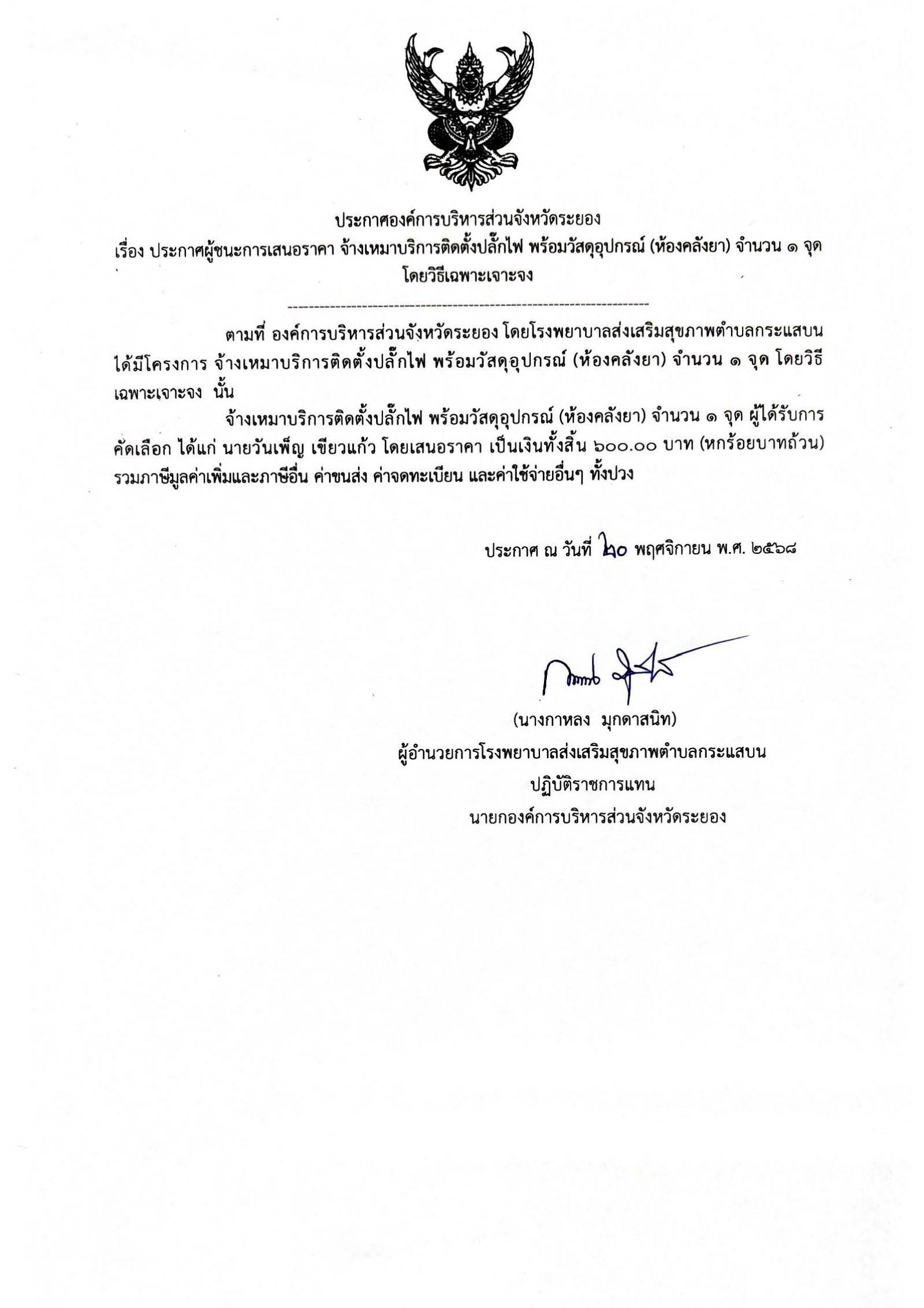 📌ประกาศผู้ชนะการเสนอราีคา จ้างเหมาจัดทำทำเนียบองค์การบริหารส่วนจัหวัดระยอง