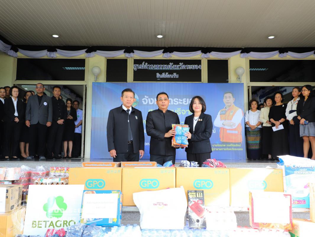 วันที่ 26 พฤศจิกายน 2568 เวลา 08.45 น. นายไตรภพ วงศ์ไตรรัตน์ ผู้ว่าราชการจังหวัดระยอง ได้กล่าวเปิดศูนย์และร่วมบริจาคสิ่งของอุปโภคบริโภคเพื่อช่วยเหลือผู้ได้ผลกระทบจากสถานการณ์น้ำท่วมภาคใต้ พร้อมด้วย หน่วยงานภาครัฐ ภาคเอกชน ประชาชน และผู้ที่เกี่ยวข้องเข้าร่วมเปิดศูนย์ โดยเปิดรับบริจาคสิ่งของ เครื่องใช้ ข้าวสาร อาหารแห้ง เสื้อผ้า เป็นต้น โดยสามารถร่วมบริจาคสิ่งของได้ในวันจันทร์ - ศุกร์ เวลา 09.00 น. - 16.00 น. ณ บริเวณโถง มุขหน้า ชั้น 1 ศาลากลางจังหวัดระยอง อำเภอเมืองระยอง จังหวัดระยอง ตั้งแต่วันนี้เป็นต้นไป