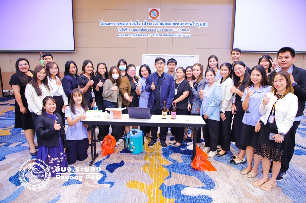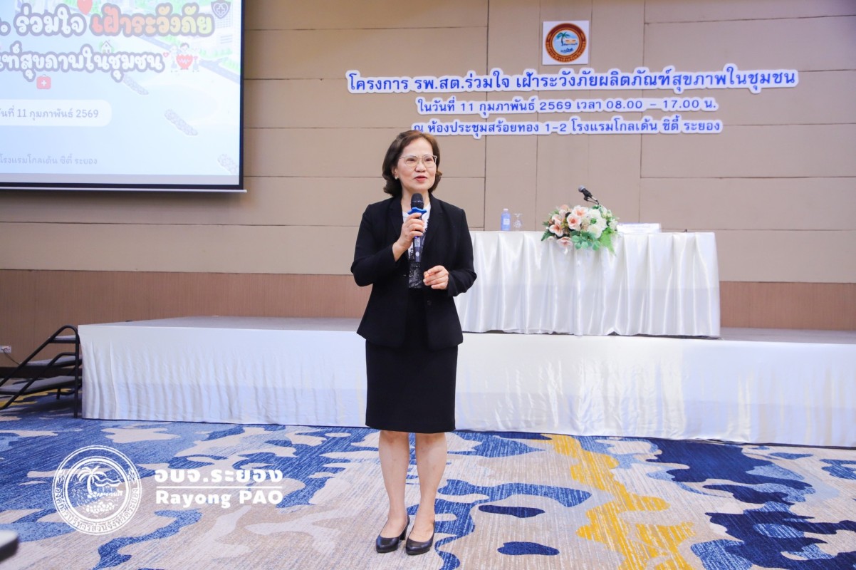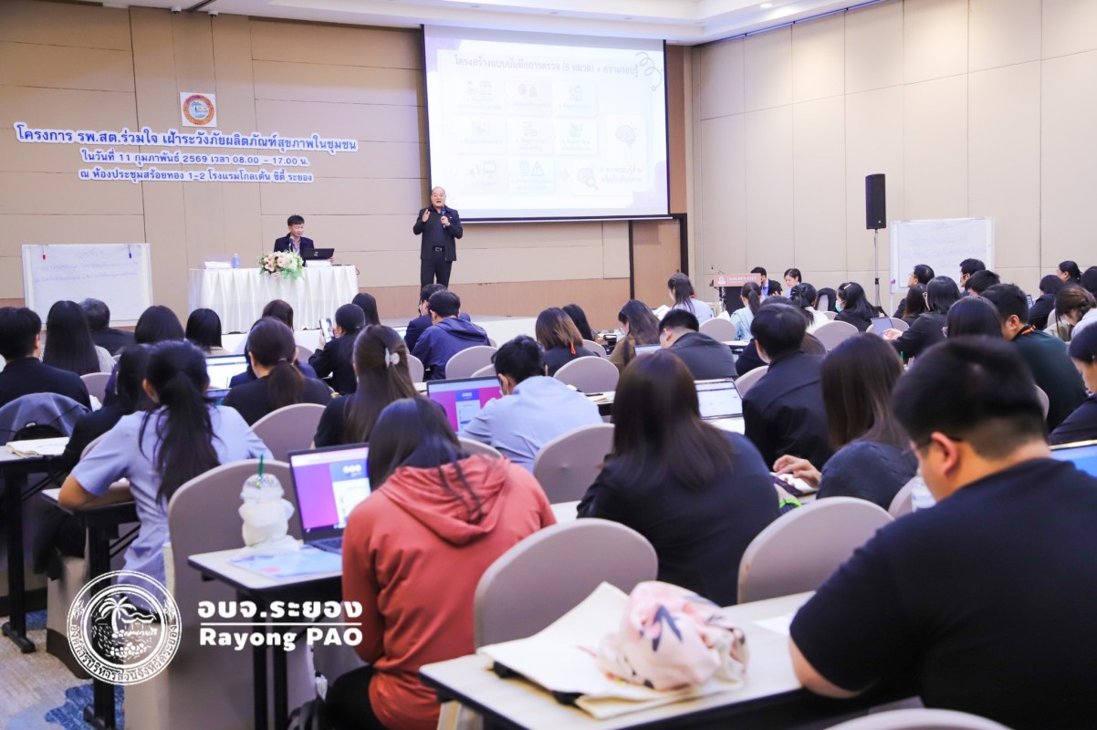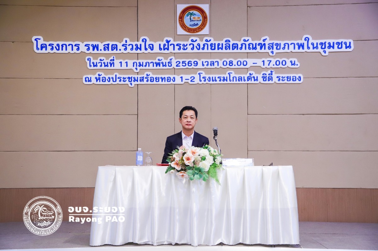วันที่ 11 กุมภาพันธ์ 2569 เวลา 09.00 น. นายกิตติ เกียรติ์มนตรี รองนายกองค์การบริหารส่วนจังหวัดระยอง เป็นประธานเปิด “โครงการ รพ.สต.ร่วมใจ เฝ้าระวังภัยผลิตภัณฑ์สุขภาพในชุมชน” โดยมีนายสุรินทร์ แสงทอง ปลัดองค์การบริหารส่วนจังหวัดระยอง กล่าวรายงาน พร้อมด้วย พญ.สมบัติ ชุติมานุกูล เลขานุการฯ, นพ.สุนทร เหรียญภูมิการกิจ ผู้ทรงวุฒิด้านการแพทย์และเวชกรรมป้องกัน, นางเสาวนีย์ อุ่ยตระกูล ผู้เชี่ยวชาญด้านพยาบาลวิชาชีพ, นายสุริยะ ศิริวัฒน์ ผอ.กองสาธารณสุข และเจ้าหน้าที่ที่เกี่ยวข้อง ให้เกียรติร่วมพิธีเปิดโครงการฯ ณ โรงแรมโกลเด้น ซิตี้ ระยอง
